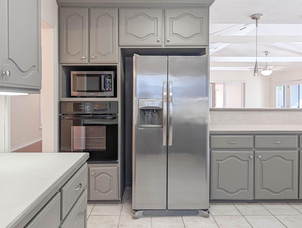 Centrally located, this 3-bedroom, 2.5-bath home with pool and hot tub truly has it all. The open floor plan features beautiful wood floors, with tile in the kitchen and baths, and carpet in one bedroom. The vaulted-ceiling den offers stunning views of the backyard retreat, complete with a covered patio perfect for relaxing or entertaining.The spacious primary suite includes a sitting area or office nook, recently renovated bath with a large walk-in shower featuring dual shower heads. Secondary bedrooms share a full bath with both a separate shower and tub.Enjoy a resort-style lifestyle in the private backyard, secured by automatic driveway gate. Ideally located just mn from CityCentre,access to community amenities including pool, tennis courts, and playground. Close to Westside Tennis Club, school bus stop for Awty International. Conveniently near stores like Trader Joe's, H-E-B, Phoenicia, and Target.Never flooded, per seller. Refrigerator, washer, and dryer included.