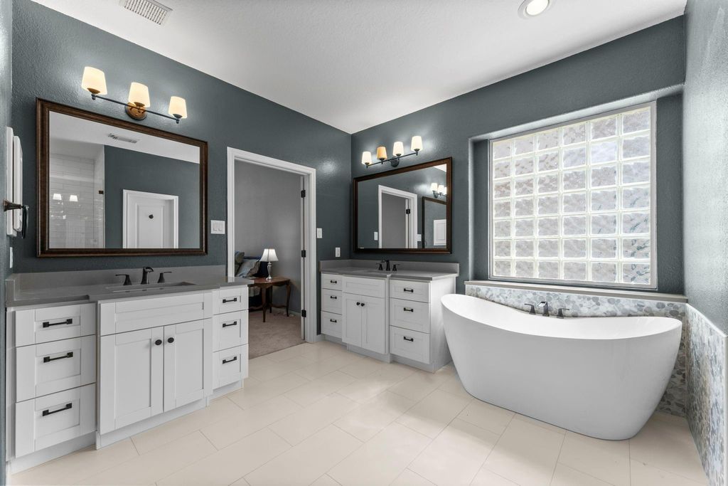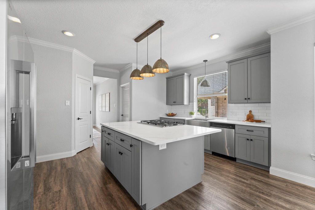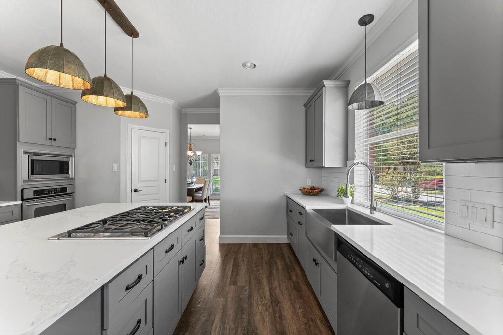 Welcome to this beautifully updated 5-bedroom home in desirable Klein ISD with no back neighbors! Step inside to a bright, open layout filled with natural light. Updates include a remodeled kitchen and primary bath, vinyl plank flooring, plush carpet, & a tankless water heater. The kitchen features shaker cabinets, white marble countertops, & stainless appliances. The spacious primary suite leads to a renovated bath with a soaking tub, subway-tile shower with frameless glass, dual quartz vanities, & matte black fixtures. Upstairs offers four bedrooms, two bathrooms & a large game room. Notable features include a long driveway for extra parking & a location near a cul-de-sac for added privacy. Newer fridge & washer/dryer can stay with the home. The neighborhood features a pool, stocked lakes, scenic trails, parks, & a community garden. The backyard is ideal for gatherings with an oversized patio. With quick access to 99 and 45, you're minutes from shopping, dining, & entertainment!