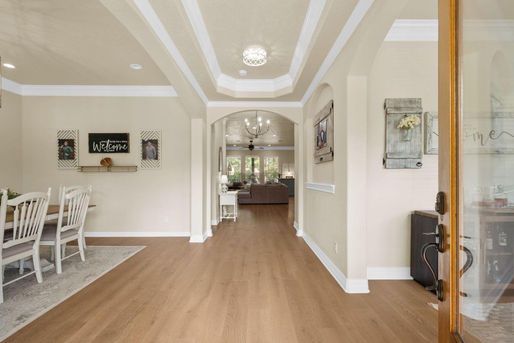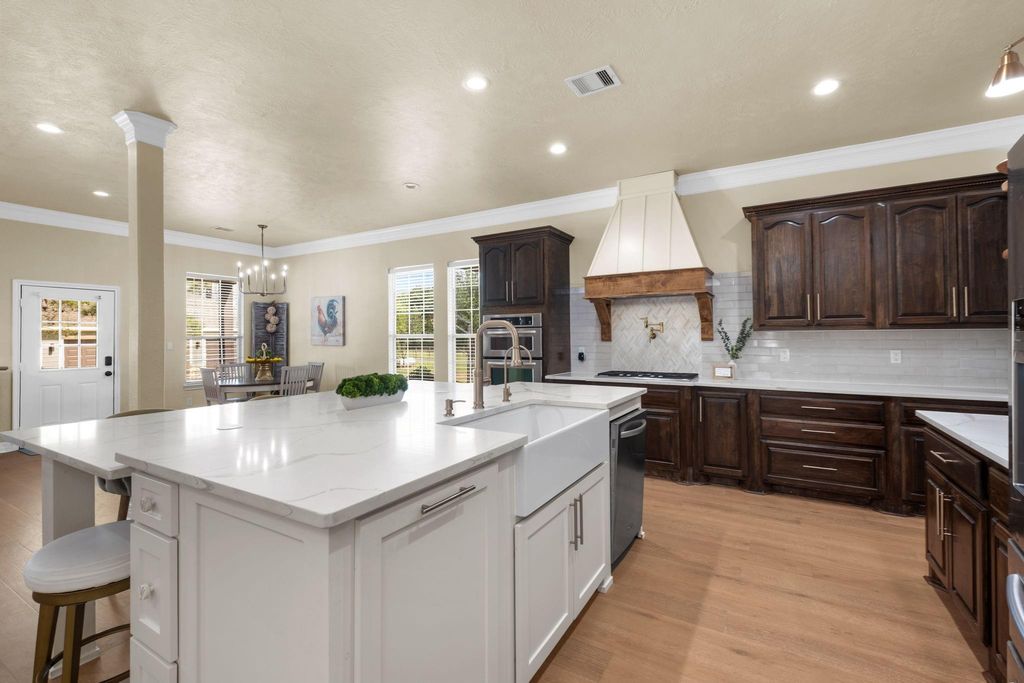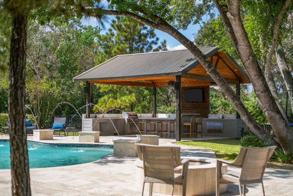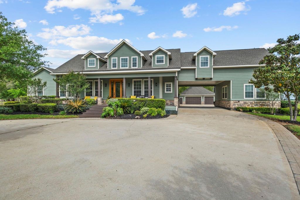 Welcome to this stunning country estate situated on 2 acres in Needville, offering 4 bedrooms in the main dwelling with a 1 bedroom casita, 4 full baths, 2 half baths, and 4,789 sq/ft of thoughtfully designed living space. This custom retreat has a formal dining area, private home office, and an open concept living area that flows into the kitchen with quartz countertops, a large island, breakfast bar, gas cooktop, and walk in pantry. The primary suite is located on the first floor and offers a private retreat with a spa like bath featuring double sinks, a walk in shower, and generous closet space. Additional bedrooms, a game room, and flexible living areas provide room for everyone. The casita is ideal for extended stays. Step outside to your resort style backyard with pool, spa, fire pit, and covered outdoor kitchen pavilion. Additional highlights include circular driveway, detached garage, carport, and fenced areas suitable for animals. Approx. 35 minutes from Houston.