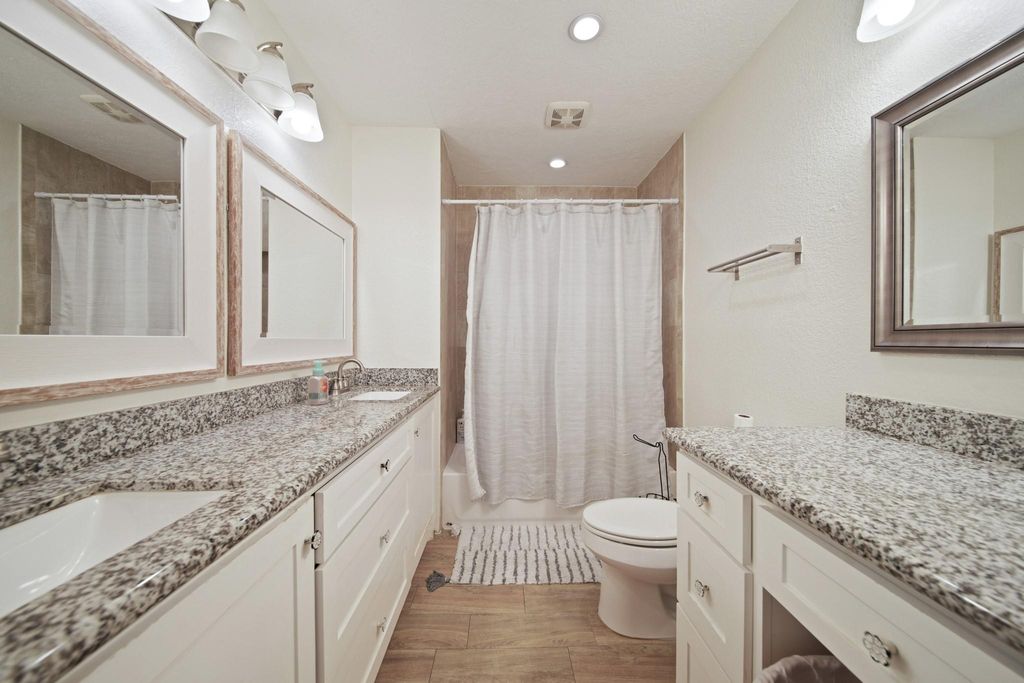 Come check out 8100 Cambridge Street Unit#61. This stunning and remodeled condo has an open and bright living room, with a soaring high ceiling, and a gorgeous fireplace with mantle. It has immediate access to the dining, and kitchen areas making this a wonderful entertainment space. The kitchen has high-end granite countertops, modern backsplash, and wood cabinets. Downstairs, there is a full secondary bedroom with its own bathroom, and easy access to the private patio deck. The master bedroom is located upstairs, and has extra space for a loft, extra bedroom, or anything you can think of. All bedrooms have carpet floors. The monthly maintenance fee covers water, trash, insurance, landscaping, and gated access. This property is a must-see for those seeking a turnkey home in a desirable location. This is a secure community, and boasts a swimming pool where you can spend a wonderful time with family and friends that come over. Schedule your showing today!