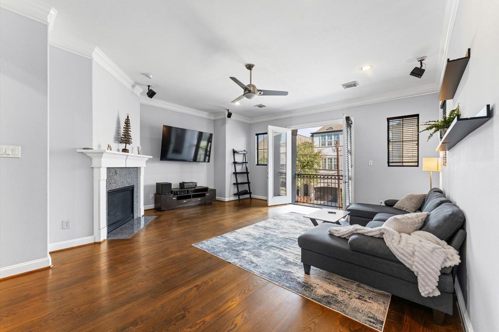 Stunning 3-story single-family home featuring 3 bedrooms and 3.5 bathrooms, thoughtfully designed for both everyday living and entertaining. The second-floor living area offers an open-concept layout with the kitchen seamlessly flowing into the dining and living spaces, highlighted by a cozy fireplace. The spacious kitchen features quartz countertops, ample cabinetry, and generous prep space. Each bedroom includes its own en-suite bathroom, providing privacy and flexibility for guests or multi-generational living. The expansive primary suite offers a relaxing retreat with a large ensuite bath and walk-in closet. Enjoy outdoor living with a private in-ground pool and patio area"”perfect for entertaining or unwinding. Additional features include a mix of wood, tile, and carpet flooring throughout, as well as garage parking. Conveniently located with easy access to major roadways, dining, and shopping.