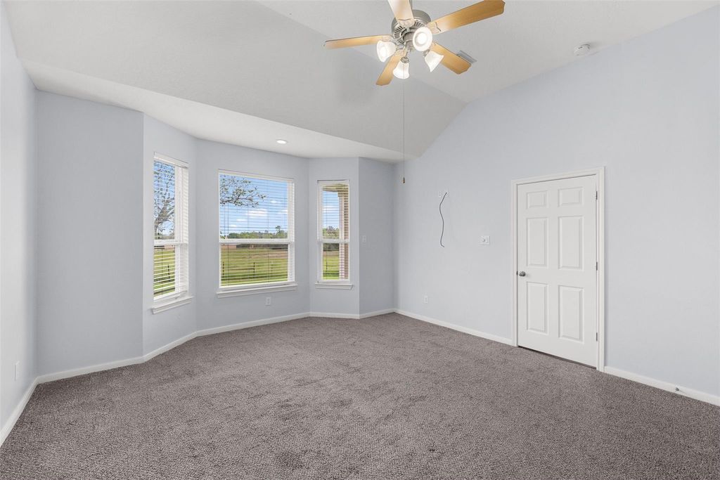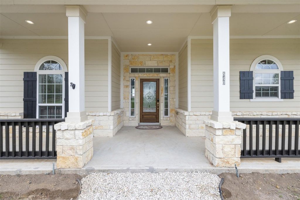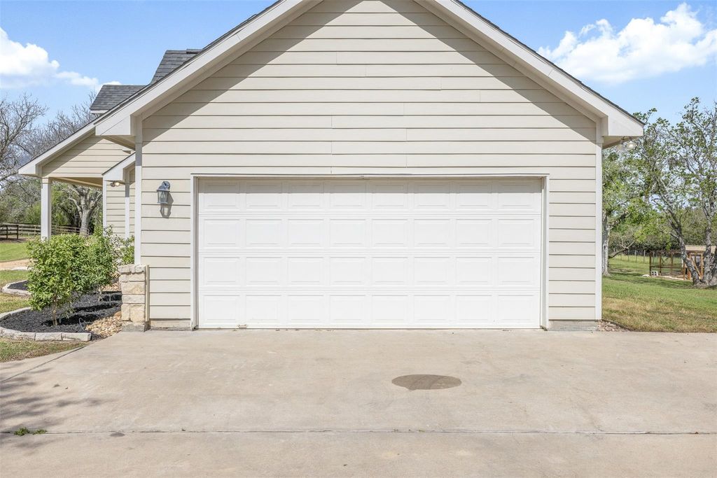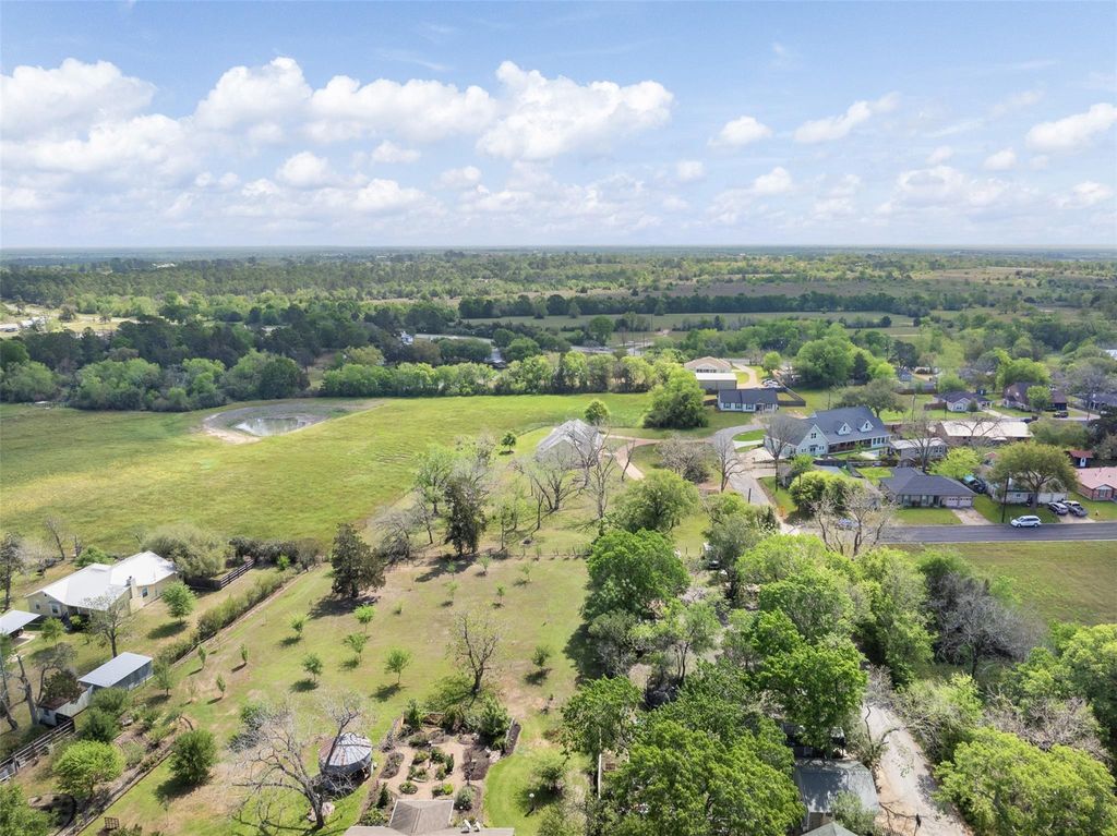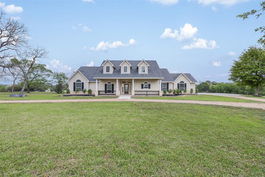 Nestled in the heart of Bellville, TX, this unrestricted ±3-acre property blends small-town charm with city conveniences. Walk to the Austin County Fairgrounds, local events, the shops & dining around the square. Mature pecan & oak trees. Enjoy peaceful mornings on the front porch & relaxing evenings on the covered back porch overlooking green pastures. The nearly 3,000 sq ft home features 3 bedrooms & 3 full baths, each on its own private wing. Inside offers a home office, spacious living area, & a double-sided fireplace connecting cozy sitting & dining spaces. Host your favorites in this spacious & useful kitchen w/gas cooktop, ample prep space & cabinets. Storage & closets are abundant! Light-filled home with neutral tones, tall ceilings, wood laminate & tile flooring in heavy traffic areas. The oversized primary suite includes dual sinks & a walk-in closet. Circular drive, side garage, extra parking, & a 2024 roof complete this inviting Texas retreat.
