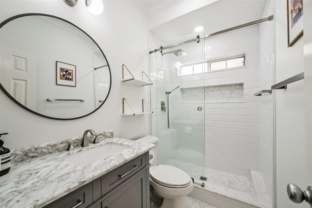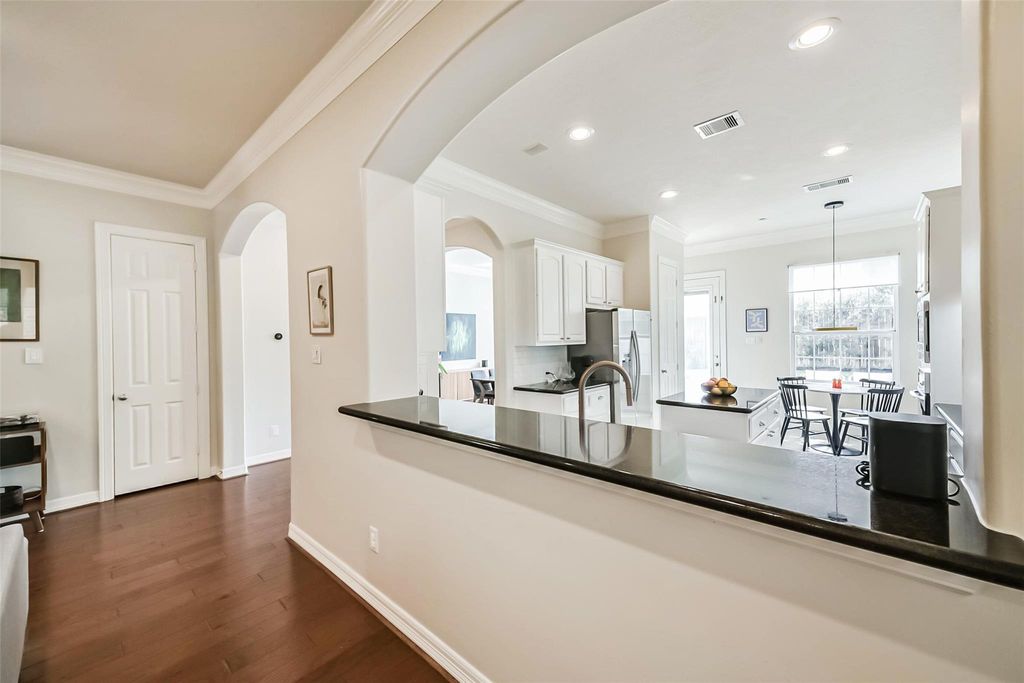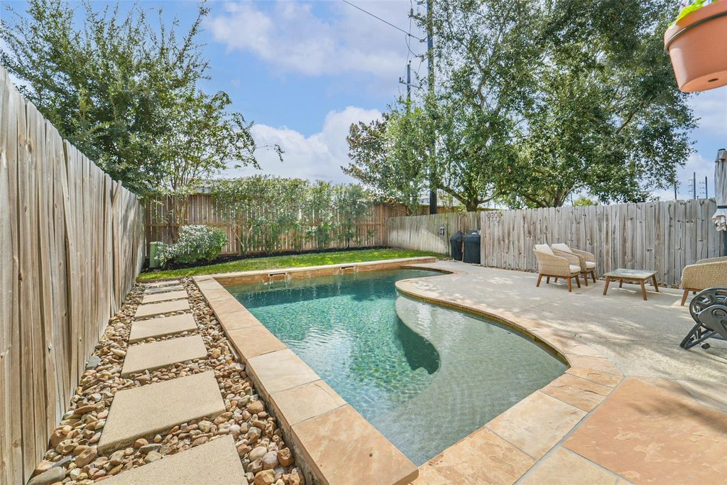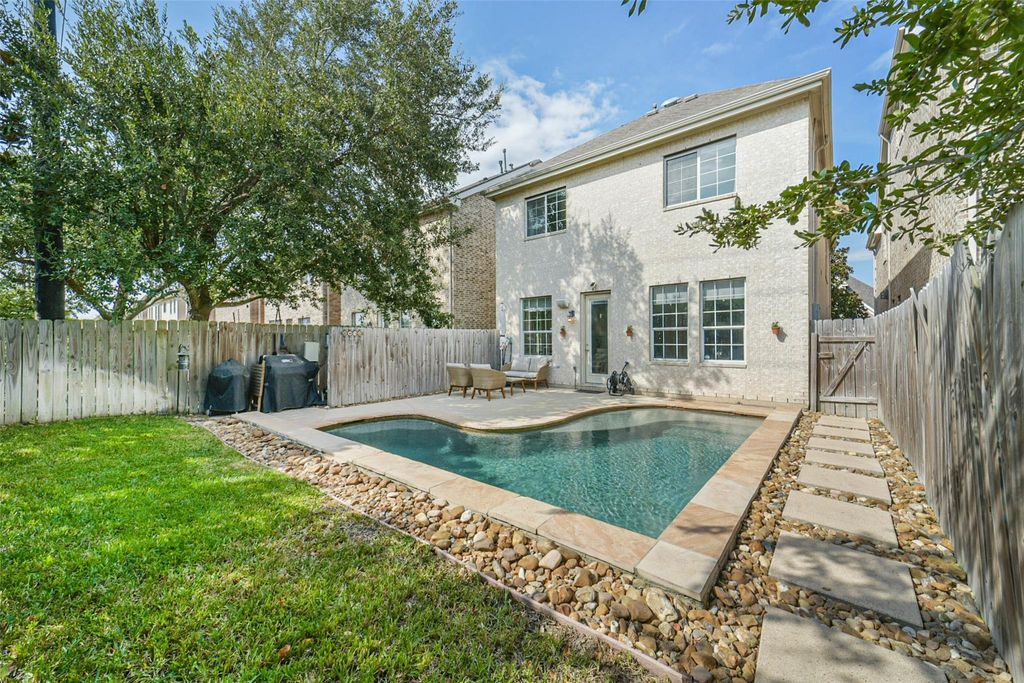 BACK on market with a brand NEW ROOF! Situated in Houston's sought after Energy Corridor, this elegant 3 bedroom brick home offers refined living with a private pool and thoughtful upgrades throughout. Enjoy easy access to top tier schools, including The Village School just 11 minutes away and the British School of Houston within a 16 minute drive, plus Kroger only 8 minutes from home. The chef inspired kitchen features stainless steel appliances, a natural gas cooktop with vent hood, and a built-in microwave above the oven. Engineered wood floors grace the main living areas, enhanced by smart (Google/Alexa compatible) light switches downstairs. All bedrooms & utility room conveniently located on second floor. Remodeled bathrooms showcase modern finishes with bright, airy design. The backyard offers added tranquility with quiet rear neighbors in a senior living community. Resident access to Briarhills POA-including a pool, tennis & basketball courts, playground, & community room.