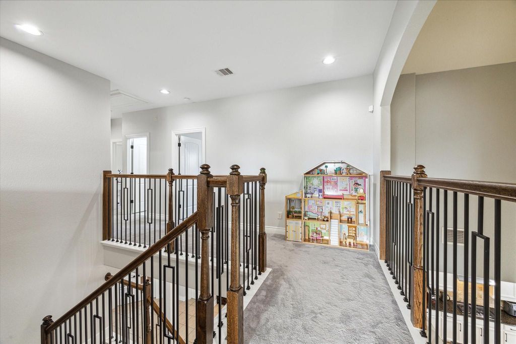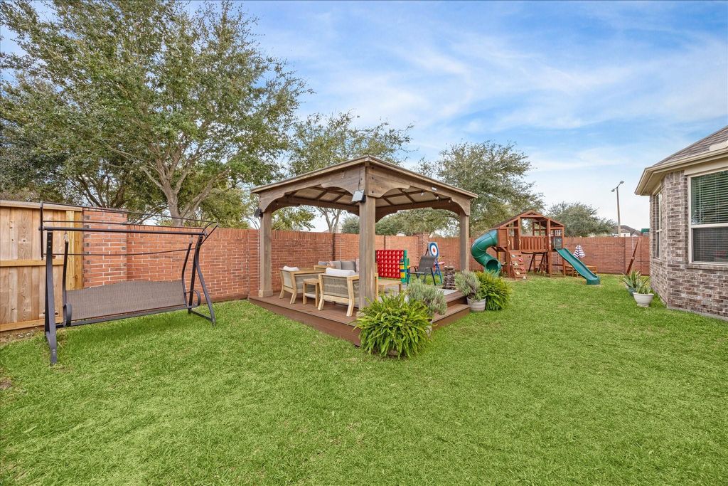 MOVE-IN READY WITH BEAUTIFUL STONE AND BRICK FRONT ELEVATION, RELAXING FRONT PORCH AND 3 CAR WIDE GARAGE ON A CUL-DE-SAC! STEP INSIDE TO THE 2 STORY FOYER WHICH OPENS TO THE OFFICE WITH WOOD FLOORS AND FRENCH DOORS AND THE DINING ROOM WITH SWEEPING ARCHWAYS. THE OPEN DESIGN FEATURES A 2 STORY DEN WITH A GRAND FIREPLACE WITH FLOOR TO CEILING STONE SURROUND AND ISLAND KITCHEN WITH WHITE CABINETS AND STAINLESS-STEEL APPLIANCES. THE PRIMARY SUITE FEATURES A SPA BATH WITH DOUBLE VANITIES, WALK-IN SHOWER AND WHIRLPOOL TUB. THE 2ND LEVEL FEATURES A GREAT GAMEROOM, 2 FULL BEDROOMS WITH A RECENTLY RENOVATED FULL BATH AND A 3RD FULL BEDROOM WITH AN EN-SUITE BATH. RELAX OUTSIDE ON THE COVERED PATIO OR PERGOLA AND WATCH THE KIDS OR FUR BABIES PLAY. CLOSE TO THE NEIGHBORHOOD POOL, SPLASH PAD, LAKES AND HEB!
