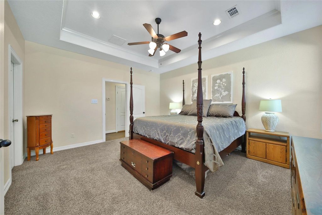 | INTERIOR | Breakfast Bar, Crown Molding, Double Vanity, Granite Counters, High Ceilings, Kitchen Island, Master Downstairs, Pantry, Soaking Tub, Walk-In Closet(s) |