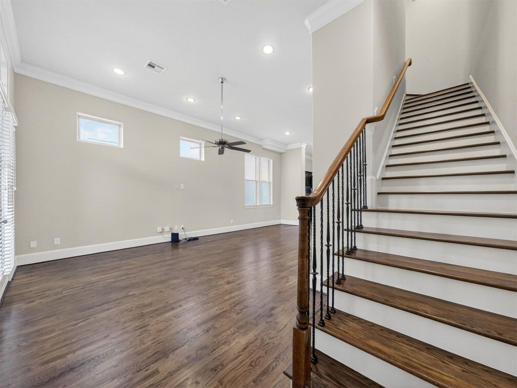 2810 Capitol Street is a 3 bedroom, 3.5 bath home in Capitol Oaks, a sought-after EaDo community with a brownstone-style feel and mature oak tree-lined streets. In one of Houston's most eclectic neighborhoods, this puts you close to downtown, the light rail, the Med Center, great restaurants, and Columbia Trail just a block away. The second floor is open and bright, with living, dining, and kitchen spaces that work well for hosting friends or relaxing at home. Wood floors, high ceilings, and natural light add the right touch. The third-floor primary suite features a spacious bathroom with a separate shower, jetted tub, huge walk-in closet, and a second closet for extra storage. Another bedroom with its own bath is also on the third floor, while the first-floor room with travertine tile is ideal for a study or flex space. Full-size laundry is on the second floor, all appliances stay, HVAC was replaced in May 2025, and the HOA handles the yard and grounds for low-maintenance living.