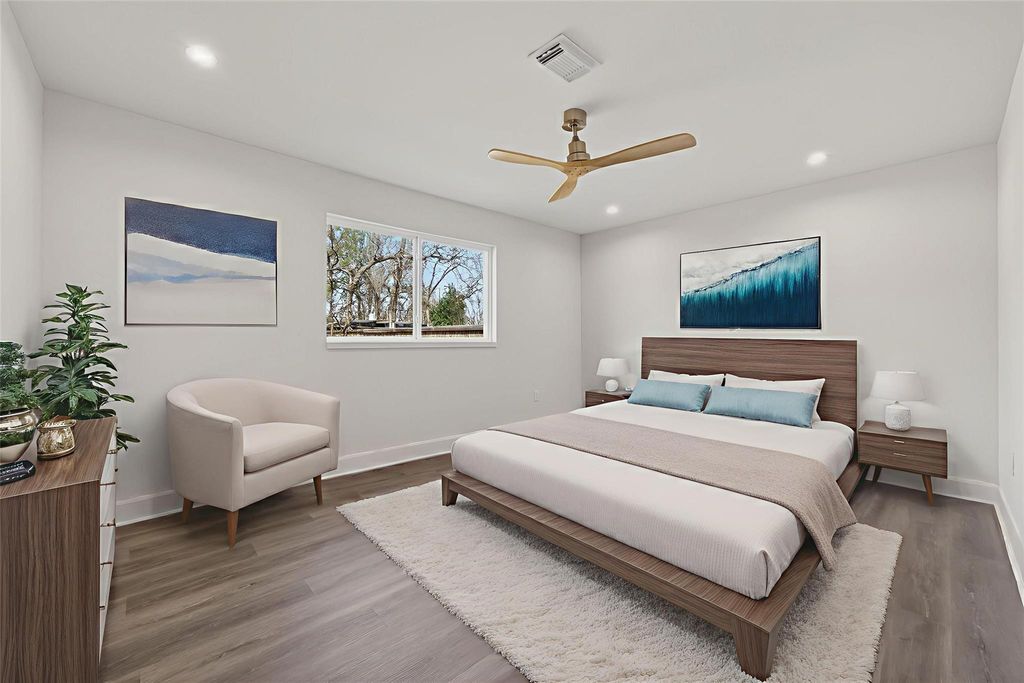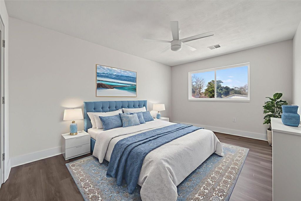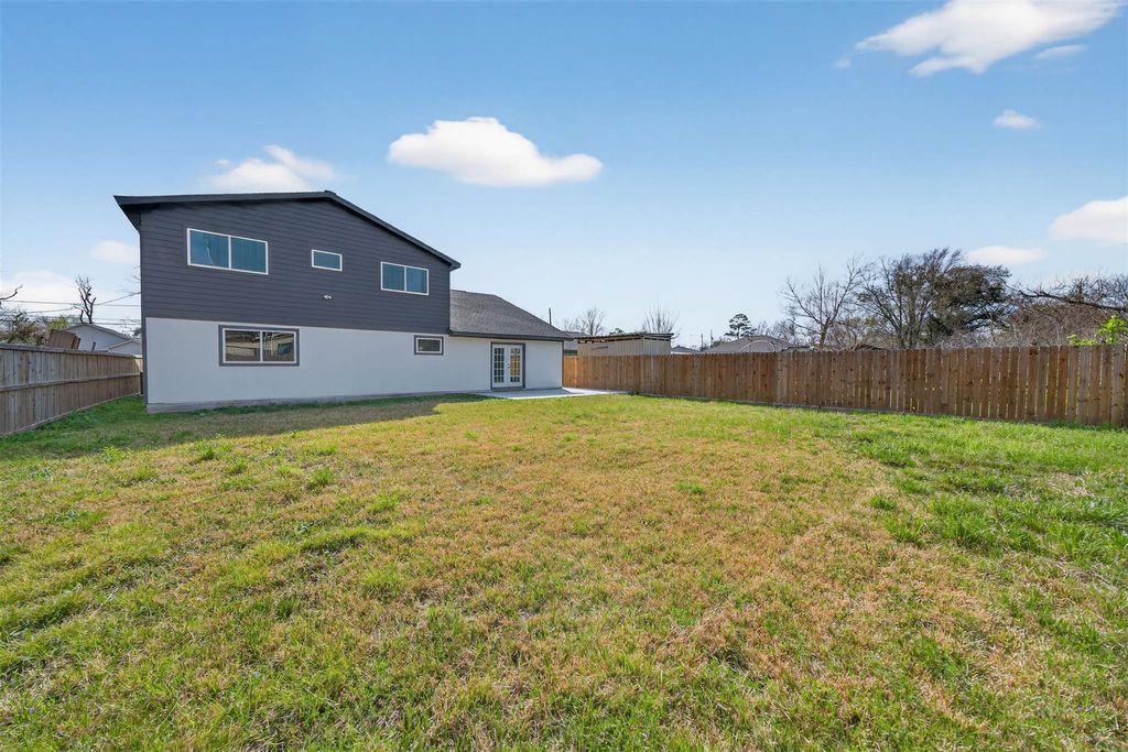 Beautifully renovated 2-story home boasting 5 bedrooms, 3 full baths, and a large backyard! Inside, you'll find new modern finishes throughout, fresh neutral paint, tile flooring on the 1st floor, wood-type flooring in the bedrooms, recessed lighting, a fireplace den with a vaulted ceiling, a separate formal living/dining area, and 3 bedrooms down including the primary suite with dual sinks and a walk-in closet. The kitchen has been opened up and remodeled with a huge breakfast bar island, upgraded countertops, ample cabinet storage, and stainless steel appliances. Upstairs holds a loft-style game room, 2 bedrooms, and the 3rd full bathroom. Proximity to I-610 for commuting and easy access to downtown!