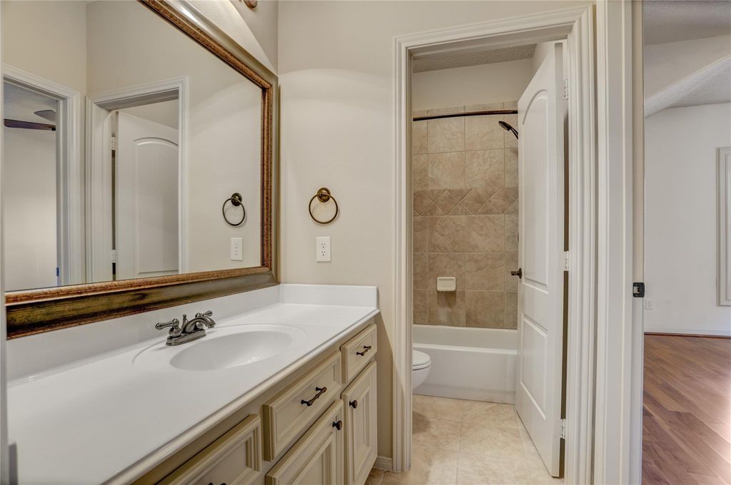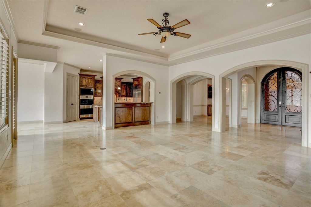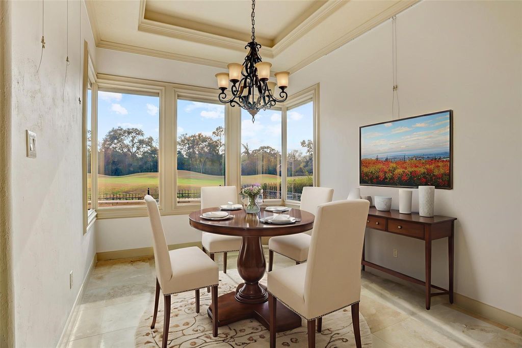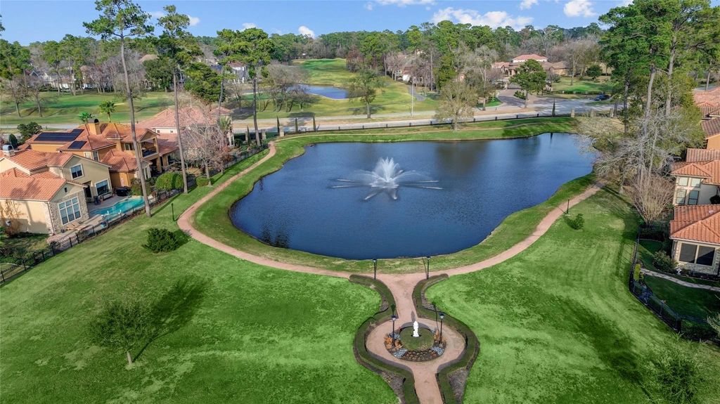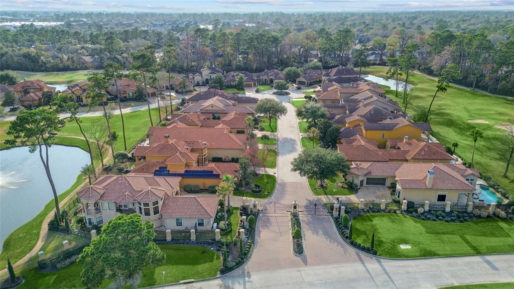 A stunning 3-bedroom/3.5-bath Mediterranean villa nestled on the Par 4 #7 of Northgate Country Club in the gated, prestigious Northgate Forest community. This one-of-a-kind home showcases distinctive architecture, high ceilings, custom arched walkways, rich wood trim, travertine floors, granite countertops, and expansive windows that fill the space with natural light. Situated on one of the largest lots in Northgate Forest, the resort-style backyard offers breathtaking golf course and lake views, a sparkling saltwater pool, travertine patio, summer kitchen, fountain, and a second-floor balcony, all offering sunset views to the West. Additional highlights include a first-floor open plan, including the primary suite, private wood-paneled study, spacious game/media room with dry bar, and 3-car garage with epoxy floors. With easy access to major Houston highways, you'll be on your way in any direction in minutes.
