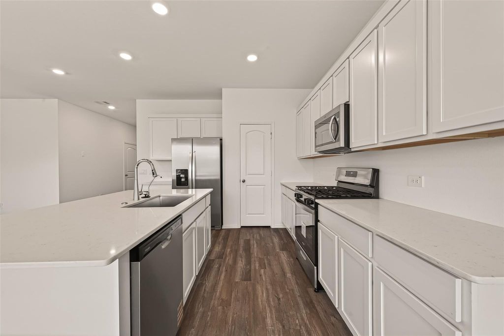 STEP INTO THIS EXQUISITE 2 STORY 4 BEDROOM! Two Bedrooms Down!! Fantastic Floorplan with Designer Finishes! Open Concept Interior Layout with Large Dining Area Open to Supersized Family Room & Delightful Island Kitchen! Privately Located Primary Suite Offers Lovely Bath with Huge Walk-In Closet! Generously Sized Secondary Bedrooms! Useful Game Room Upstairs! Oversized Utility Room! Beautiful and Modern Kitchen Cabinetry, Quartz Counters, Stainless Steel Appliances Including Gas Range/Stove, Smart Home System, Full Sprinklers, Front & Back Sod, Full Front Landscaping, Covered Back Patio, Tankless Water Heater, LED Lighting, PLUS MORE! Sunterra Features Amenities Galore!