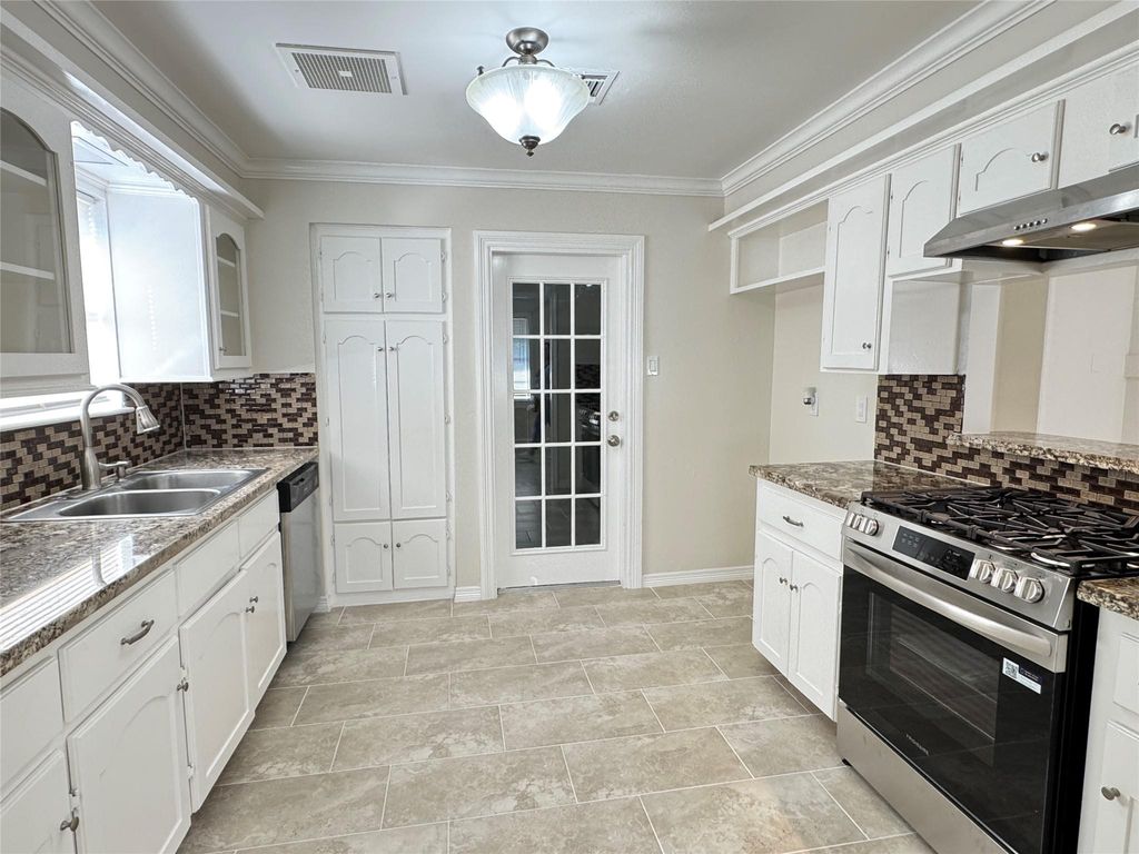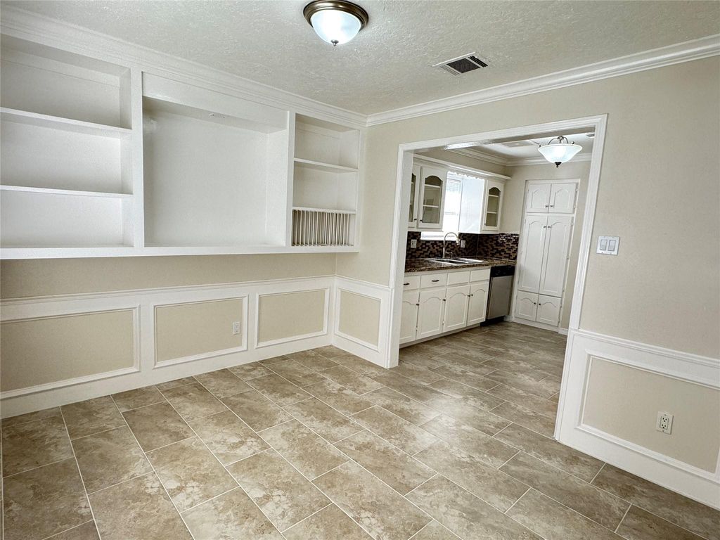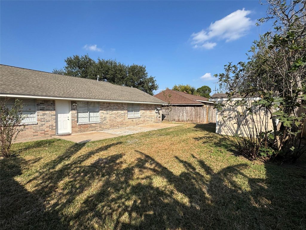 Remodeled three bedroom home in great condition and ready to move in. Updates include; new two tone paint in-out, tile floors, carpet, crown molding, fixtures, etc. Remodeled kitchen with white cabinets, granite counter-tops, back-splash tile, new stainless steel appliances, a pantry and new fixtures. Spacious family room with new tile floors, high ceilings and built-ins. Dining room with built-ins. New A/C, heater and coil. Primary bedroom with a remodeled bathroom and a walk-in closet. Good size bedrooms with new ceiling fans. Front yard fenced with an iron fence and a driveway gate. Located in a large lot. Large storage at back yard. Did not flood during Harvey and not in a flood zone.
