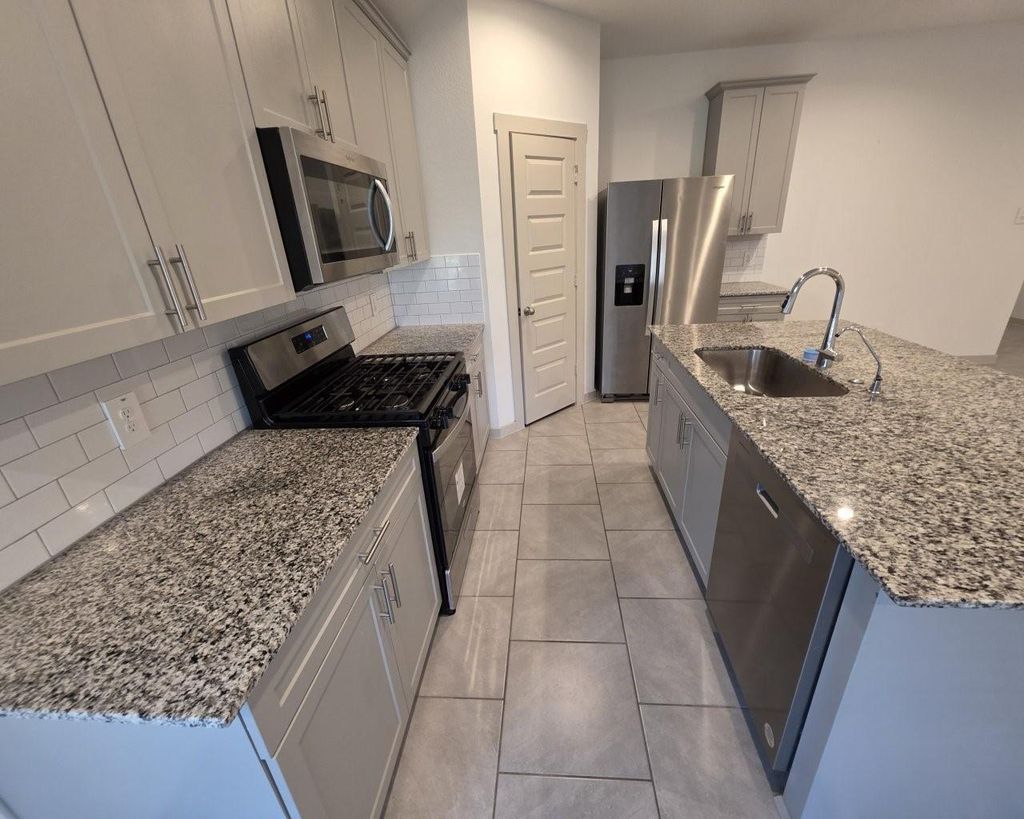 CUTE SINGLE STORY HOUSE WITH 3BEDROOM TWO BATH AND TWO CAR GARAGE .WASHER DRYER AND REFRIGERATOR INCLUSED.. GRANITE COUNTER TOP... HUGE BACK YARD BUILT IN 2022