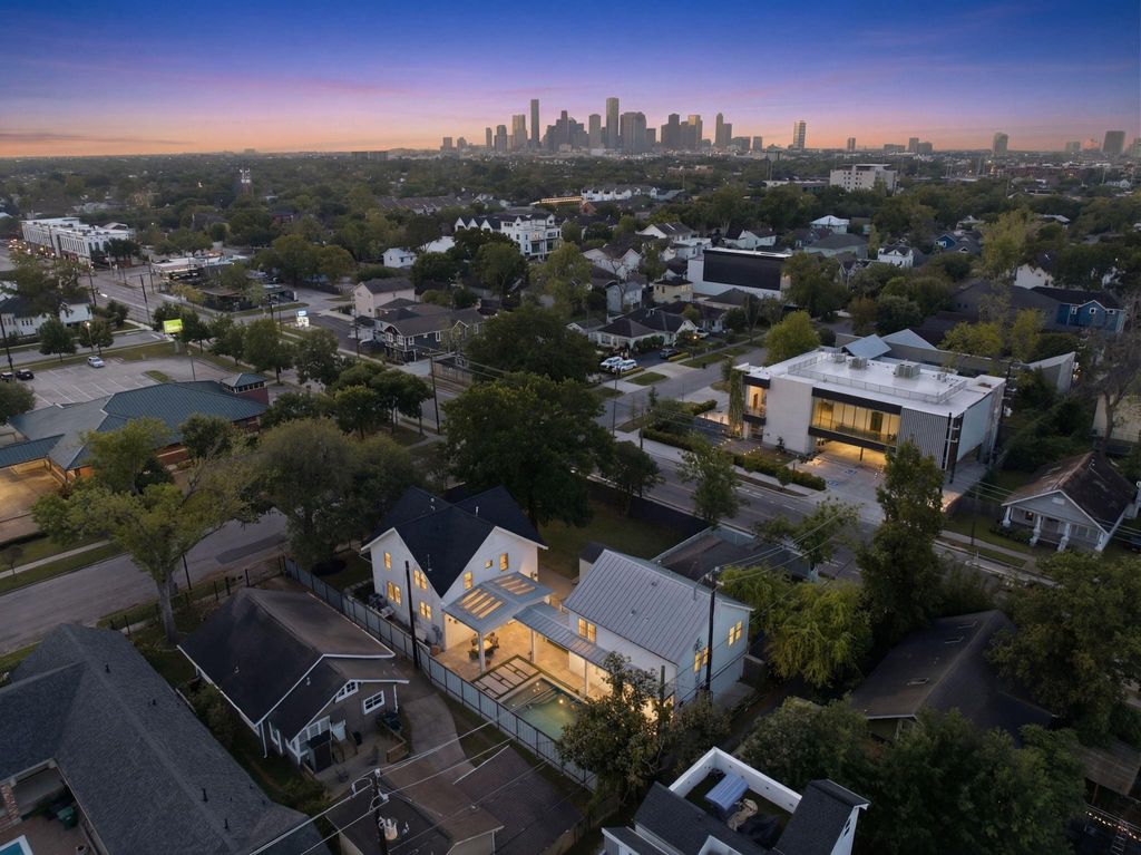 Set on an 11,000+ sqft corner lot in the heart of Houston Heights, this 1920 four-square Craftsman blends timeless architecture w/ modern refinement. The 4-bedroom main home, plus a fully equipped 2-bedroom garage apartment w/ large private deck, offers a curated blend of character & sophistication across 2,976 sqft of total living. Rich wood floors flow throughout, connecting refined living & dining spaces to a thoughtfully designed kitchen ft. custom cabinetry w/ concealed storage, hidden drawers, LaGrange range, natural black soapstone counters, dual refrigerators & Bosch appliances. The primary suite offers a serene retreat w/ beautifully appointed bath & custom builtin closet. Elevator adds convenience. Outdoors, enjoy a private setting w/ pool, spa, water feature, outdoor kitchen, pool bath & expansive 4,000+ sqft side yard: an ideal backdrop for entertaining. Moments from MKT, Heights Trail & premier dining, capturing the walkable, porch-front lifestyle that defines the Heights.