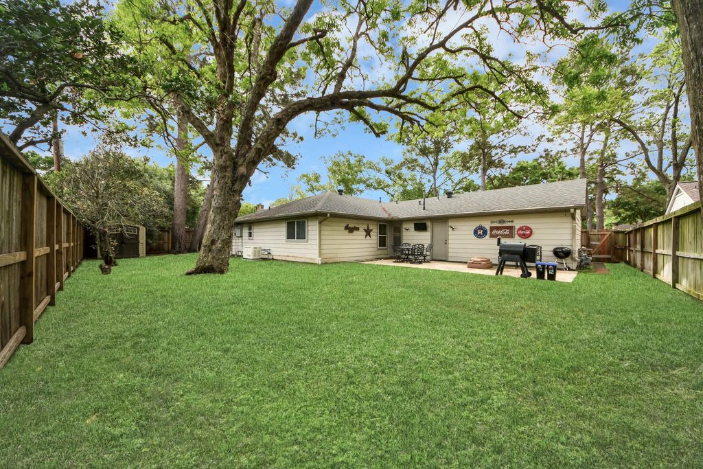 Situated on a tranquil cul-de-sac in the heart of Sherwood Oaks, this stunning ranch style home seamlessly blends comfort and functionality. Featuring an open floor plan, the property boasts four spacious bedrooms plus a dedicated office or flex space complete with built-ins"”perfect for remote work or study. The vaulted family room flows effortlessly into the chef's kitchen, highlighted by a striking 10-foot stone island and a large walk-in pantry. Outdoors, you'll find a spacious yard large enough for a pool or playset and a sizable double-wide driveway for additional parking or room to play. Taken to the studs in 2016, this home has many thoughtful and recent upgrades including plumbing, electrical, windows, roof, irrigation system, drainage and fences. Enjoy peace of mind provided by a GENERAC whole home generator and proximity to major freeways, City Centre, nature preserves, and the newly renovated SBISD Sherwood Elementary (est. completion Fall 2026). Never flooded.