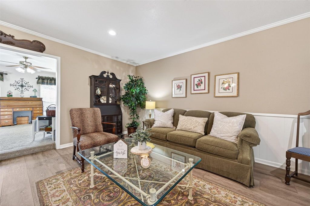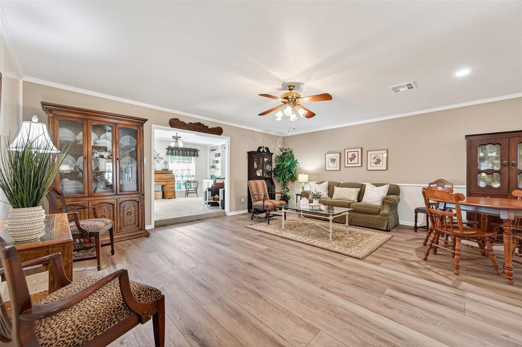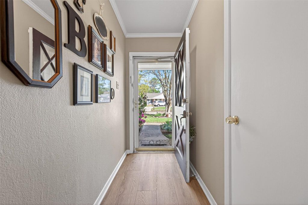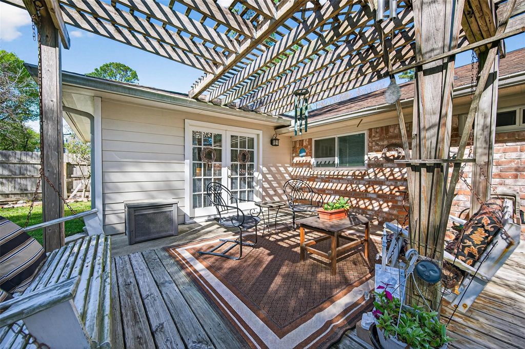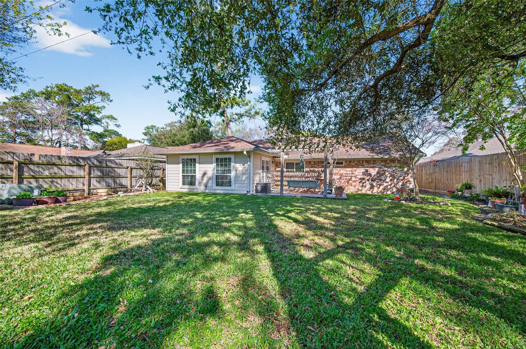Beautiful 3/2, One Story in Woodland Trails! This move in ready home features Extended 9" LVP Wood Flooring, Laminate Floors and Tile, Neutral Int Paint, Large Living Room Plus Den/Family Rm with Built ins, Ample Kitchen with White Shaker Cabinets, Granite Counters & Travertine Backsplash, Spacious Primary Bedroom with dual closets, Good size Secondary Bedrooms and Granite Counters in both Bathrooms, New HVAC system and Ductwork ('25), Double Pane Window World Windows, Large backyard with plenty of room to garden, play, entertain, or relax on the pergola covered patio, Recent back & left Fence ('25), Storage shed or workshop with electric, Brick and Hardiplank Exterior, plus much more! Centrally located in a quiet, established neighborhood, this move-in-ready home is minutes from schools, shopping, dining, major highways, and quick access to White Oak Bayou Trails w/over 17 miles of hike & bike trails and greenspace!