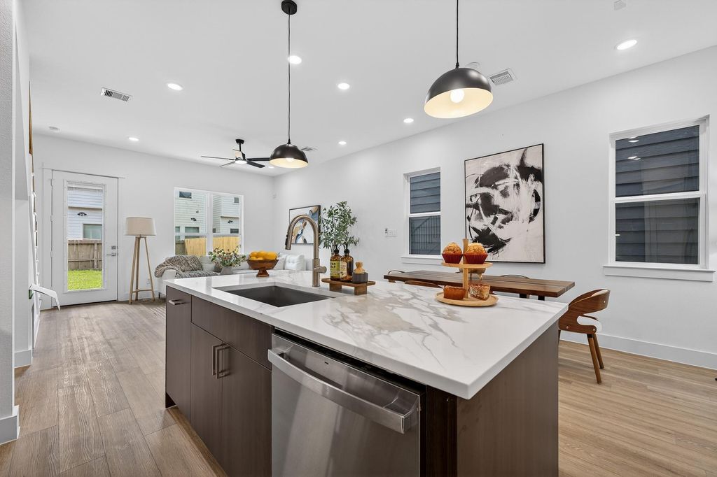 Experience the perfect balance of contemporary luxury and expansive outdoor living in Independence Heights. Situated on a rare, oversized lot, this stunning new construction 3 bedroom, 2.5 bath home offers a private backyard that feels significantly larger than typical for the area. The open-concept main floor is anchored by a gourmet kitchen, featuring custom wooden cabinetry, quartz countertops, and premium stainless steel appliances that flow seamlessly into the living and breakfast areas. The thoughtful design includes a chic mudroom and a designer half bath on the first floor. Upstairs, a flexible game room serves as a secondary retreat alongside three spacious bedrooms. The primary suite is a true sanctuary, boasting grand vaulted ceilings and a spa-inspired ensuite with a porcelain soaking tub, frameless glass shower, and a massive walk-in closet with custom built-in shelving. Relax on your covered patio and enjoy the luxury of space, all with immediate access to I-45 and 610.