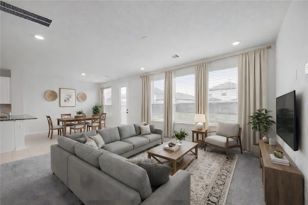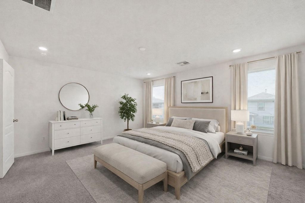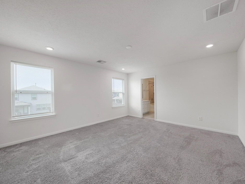 $500 move in Credit if leased by 6/1. Welcome home to this bright and inviting two-story residence in the vibrant Sunterra community. The open concept main floor offers seamless flow between the living, dining, and kitchen areas, creating a comfortable space for everyday living and entertaining. Large windows bring in beautiful natural light while the neutral palette provides a perfect blank canvas for buyers to personalize. The kitchen features white cabinetry, quartz countertops, stainless appliances, and a breakfast bar overlooking the living space. Upstairs you'll find a versatile loft ideal for a game room or workspace along with the spacious primary retreat featuring a walk-in closet and private ensuite bath. Two generously sized secondary bedrooms and a full bath are also located upstairs, creating a functional layout with all bedrooms together. Enjoy a generous backyard and access to Sunterra's incredible amenities including the Crystal Lagoon, parks, and walking trails.