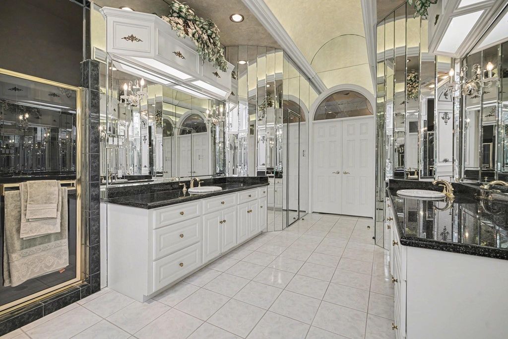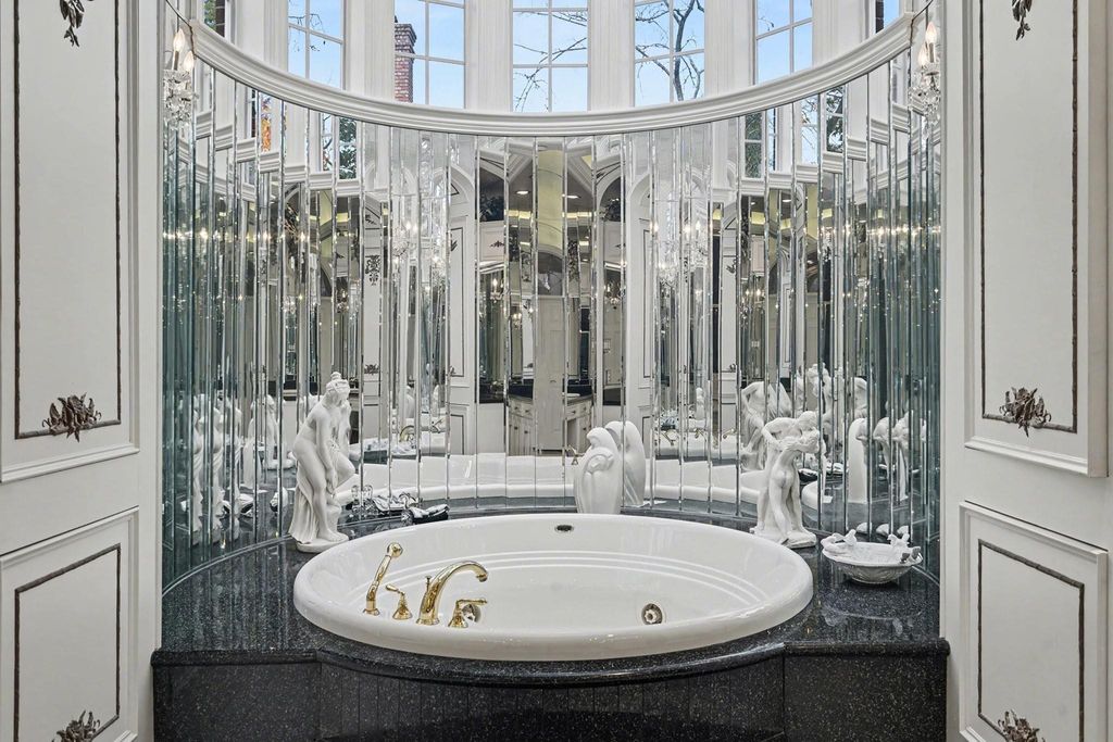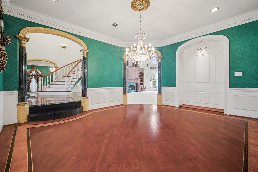 Extraordinary custom estate in the prestigious Northgate Forest golf course community. This 7,686 sq ft residence sits on a private 0.73-acre, fully bricked lot overlooking a 27-hole championship golf course. Grand living area features soaring 23-foot ceilings, custom mahogany doors, mahogany built-ins throughout, Swarovski crystal accents, and custom chandeliers. Home offers 6 bedrooms, 5 full baths, and 3 half baths, plus formal dining, music room, and private prayer room. The primary suite is a true retreat with a spectacular spa-inspired en suite bath. Outdoor living includes a pool and hot tub, ideal for entertaining. Four-car garage. Exceptional craftsmanship, scale, and privacy in one of North Houston's most established golf course neighborhoods.