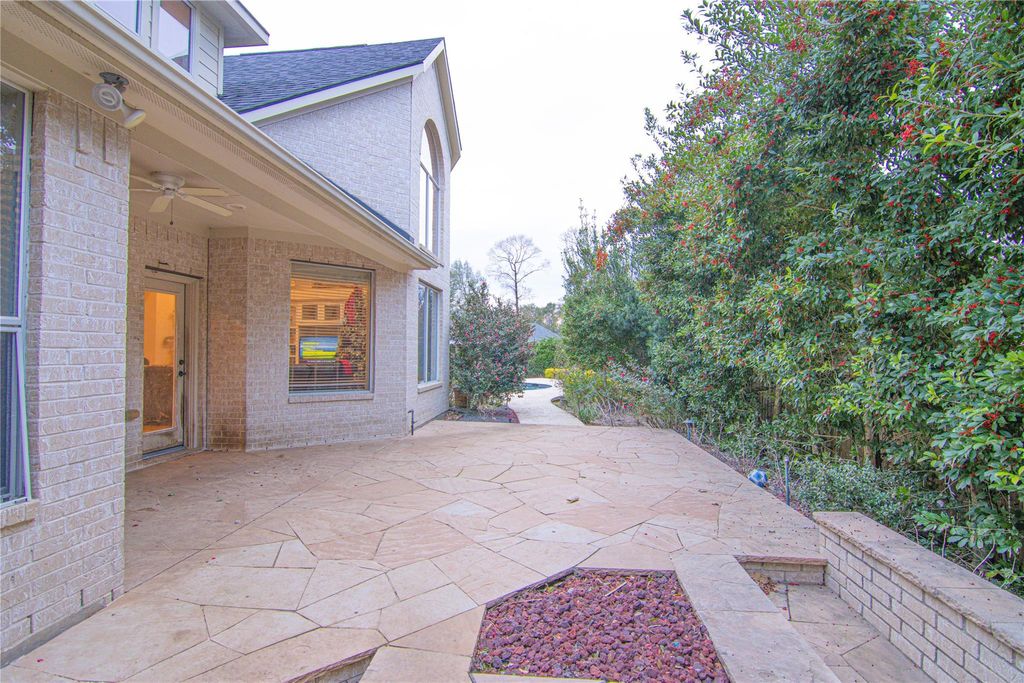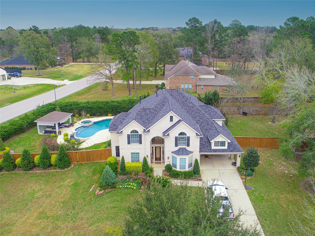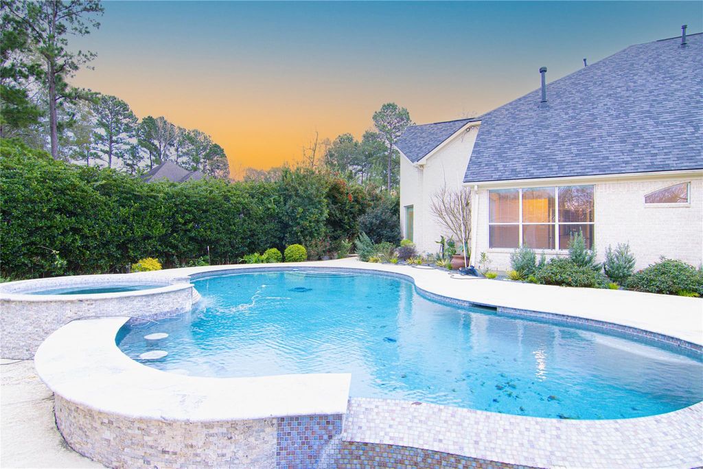 Beautiful home on 3/4 acre lot, vacant & ready for move-in. Spacious and well lit Livingroom. Sunroom or Office off of main living area. Large master on the first floor with a jetted tub, separate shower, large walk-in closet and sitting area. Formal Dining Room, Breakfast Room and Gourmet kitchen. SS appliances, double-oven, granite counter tops, large island and a breakfast bar for all the family to enjoy. Flagstone patio w/built-in firepit. Fully fenced, large backyard with a pool and a beautiful garden. Porte-cochere. All city utilities, No MUD! HAS NEVER FLOODED! Low tax rate. Gated Neighborhood just minutes from I-45 and Conroe's Medical Center, The Woodlands, ExxonMobil, Lake Conroe, shopping and restaurants. Subdivision has Gazebo and lake.