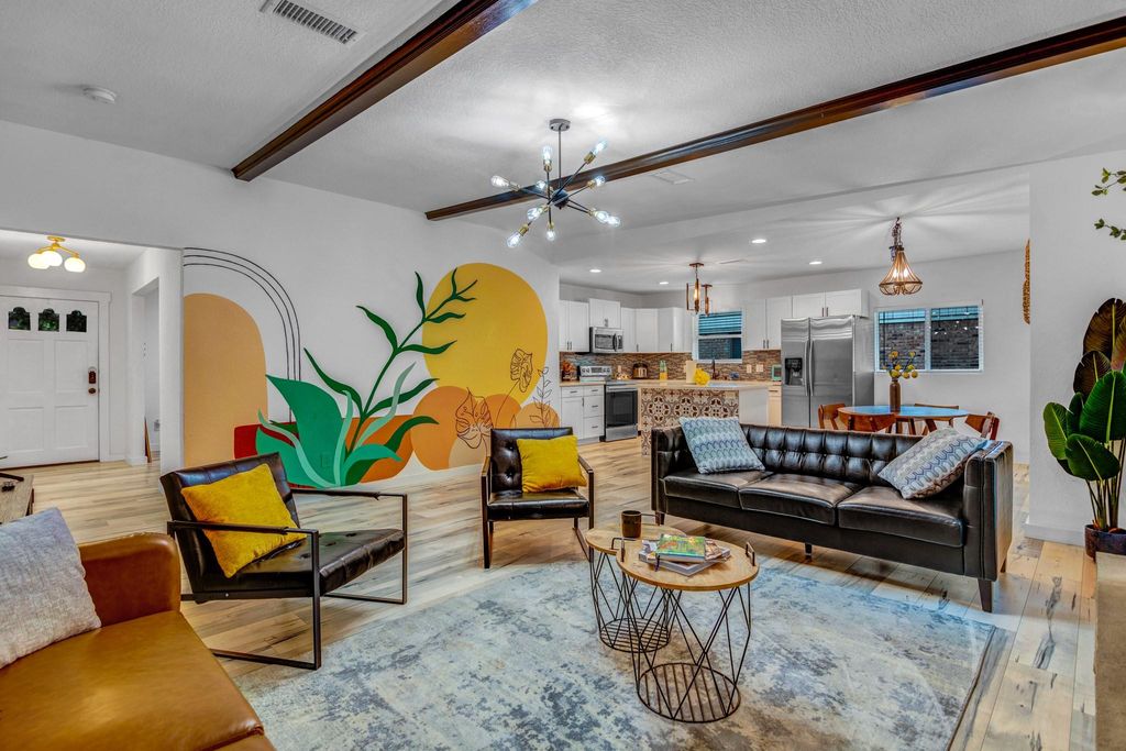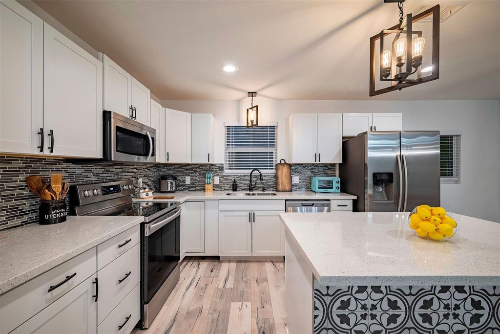 Beautifully remodeled and updated Westbury home. Recent upgrades include: Dual pane windows, new flooring, kitchen and bathroom cabinets, Quartz countertops, Stainless steel appliances, new upgraded electrical service panel, under slab sewer plumbing replaced, LED lighting, full kitchen and bathroom renovations and more! Island Kitchen opens to the living room for great entertaining and functionality. Large fenced back yard with mature trees and no back neighbors! Beautiful patios and hot tub in the backyard!
