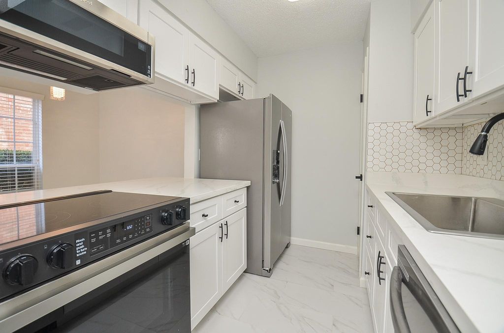Galleria Location! Fully renovated, first floor unit with 2 Beds & 2 baths. Tile floors throughout. The kitchen is fresh with quartz counters, pantry, breakfast bar, and new stainless steel appliances, fridge to convey with unit. The bathrooms have been also just been been updated with custom tile and quartz counters. New lighting and plumbing throughout. The open living space is perfect for entertaining. Both bedrooms are spacious and have walk in closets. Gated complex with 24/7 security cameras is very inviting with gorgeous landscaping. Assigned parking and visitor's parking The complex has a clubhouse, pool, courtyards and central laundry. All bills included in monthly maintenance are: water & sewer, trash pick up, gas, electricity & cable. Great schools around. Don't miss the opportunity to be close to first class shopping, restaurants, groceries, night life, banks and so much more. The convenient city lifestyle awaits you. Schedule your appointment today!