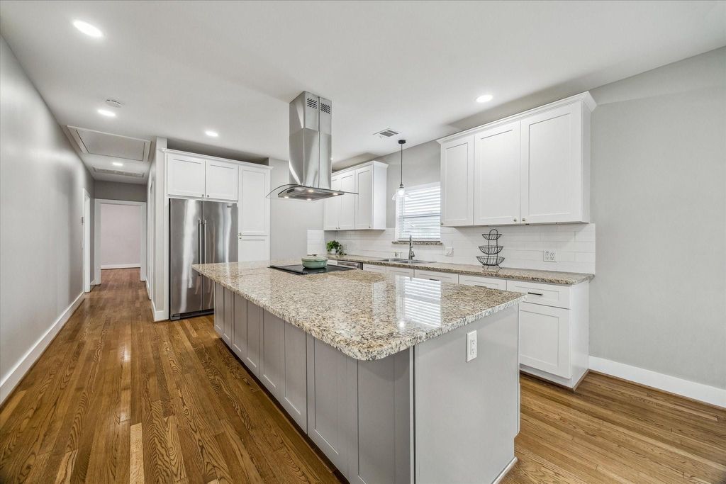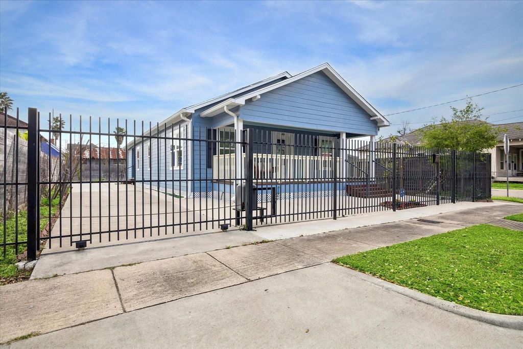UPGRADES GALORE! This 3 bedroom, 2 bath home is nestled on a fully gated CORNER LOT in the quaint neighborhood of Little & Dickinson! Extensively remodeled in 2021, this home features a new roof, HVAC system, PEX plumbing, windows, flooring, electrical panel, water heater and exterior paint. The fully renovated kitchen offers quartz countertops, a large island, stainless steel appliances, and more! Both bathrooms were updated, including a primary suite with a walk-in shower and double sinks. Interior improvements include fresh paint, texture, molding, lighting, and ceiling fans throughout, a LARGE laundry room which can be used as a 4th bedroom! Additional upgrades (2022-2026) include a security camera system, new gutters and drainage, a sliding gate motor, circuit breaker box, deck railings, foundation skirting, and a new concrete driveway and walkway. Short distance from Downtown, POST, Daikin Park, Toyota Center, Discovery Green, restaurants, I-10 & major freeways!
