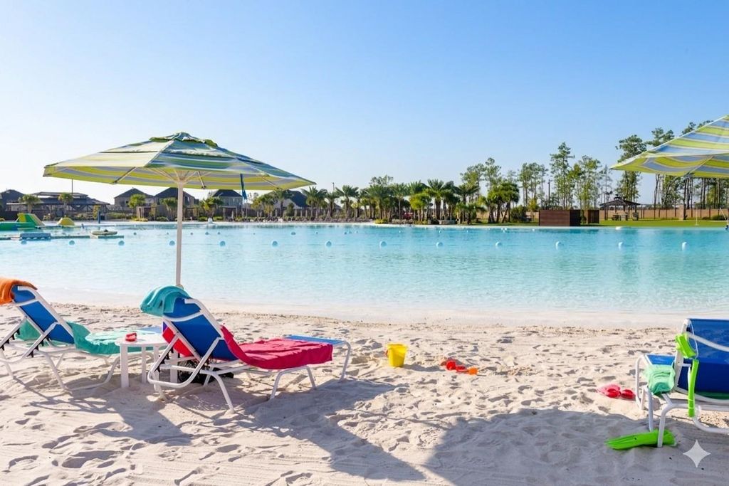 Step into this exquisite single-story residence in the coveted Sunterra community. Boasting 4 bedrooms, 3 full baths, and a bright open layout, garage was upgraded with extra space for storage. this home is a true gem. Enjoy elegant wood flooring, quartz countertops, and stainless steel appliances in the kitchen. The primary suite offers a garden tub, separate shower, and a generous walk-in closet. All secondary bedrooms includes window blinds and ceiling fans. while the backyard features a covered patio for relaxation. Sunterra amenities include a amazing resort-style clear water lagoon with sandy beach, modern clubhouse, playground, and trails. It's an inviting outdoor space perfect for relaxation and leisure. Washer, dryer, and refrigerator are included, along with a whole house water softener system and water purifier. Make this exceptional property your new HOME today!
