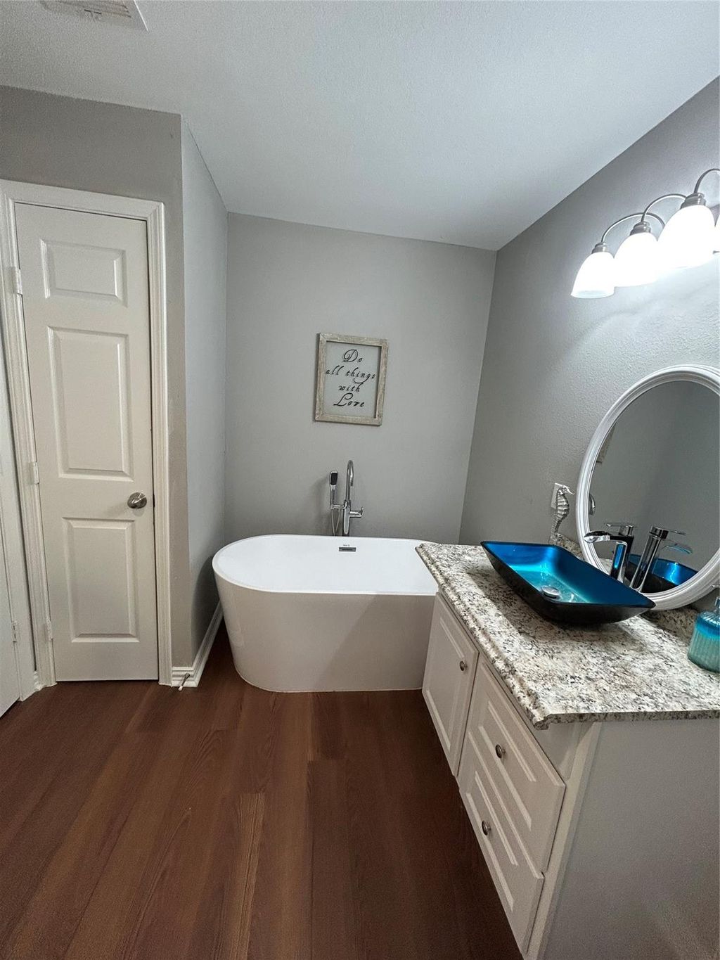 Beautiful, Spacious Home with Stylish Upgrades Step through the charming red front door into a bright, spacious home featuring beautiful wood-laminate flooring throughout the main living areas. The inviting family room flows seamlessly toward the hallway, leading you into an open, modern kitchen designed for both style and functionality. The kitchen showcases: "¢ Granite countertops "¢ A large island with elegant hanging pendant lights "¢ Stainless steel gas range "¢ Window overlooking the yard, equipped with a water softener Retreat to the huge primary suite, offering generous space and a walk-in closet. The primary bath includes a relaxing soaking tub"”perfect for unwinding at the end of the day. This home blends comfort, charm, and thoughtful upgrades, creating a welcoming space for everyday living and entertaining.
