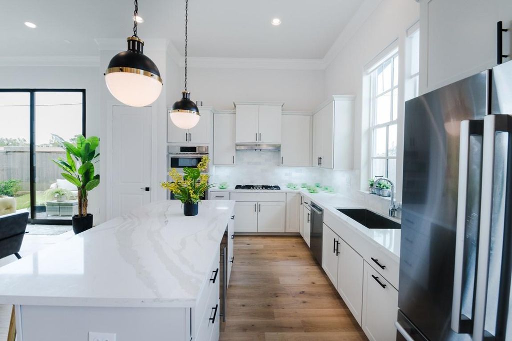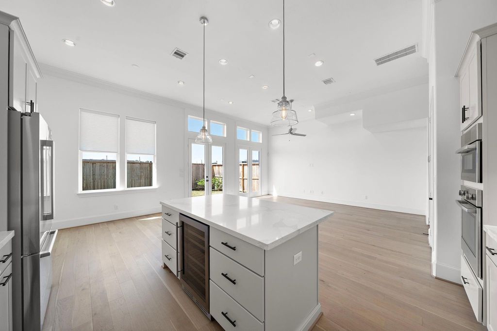 Beautiful, brand new FOUR BEDROOM home with a huge game room/rooftop terrace and spacious private fenced backyard (18ftx32ft)! FIRST FLOOR LIVING home nestled in the gated community of Timbergrove Green with fantastic location in the loop. Enjoy soaring 12ft ceilings in your living area with epic 10ft glass sliding trifold doors leading from your spacious living room to backyard with luxurious high end crown moulding and high baseboards. Chef's kitchen features SS Bosch appliances, furniture grade high quality cabinets, real white marble backsplash, and quartz countertops. Elevator capable. Primary 5 star spa-like bath is has tons of natural light and elegant freestanding tub. Epic, huge game room on the third floor with spacious covered rooftop terrace for outdoor entertaining. Walkable to Jaycee Park and zoned to 5 star A rated Sinclair Elementary!