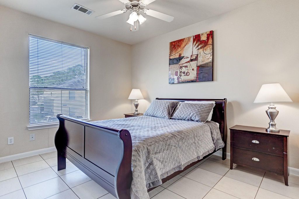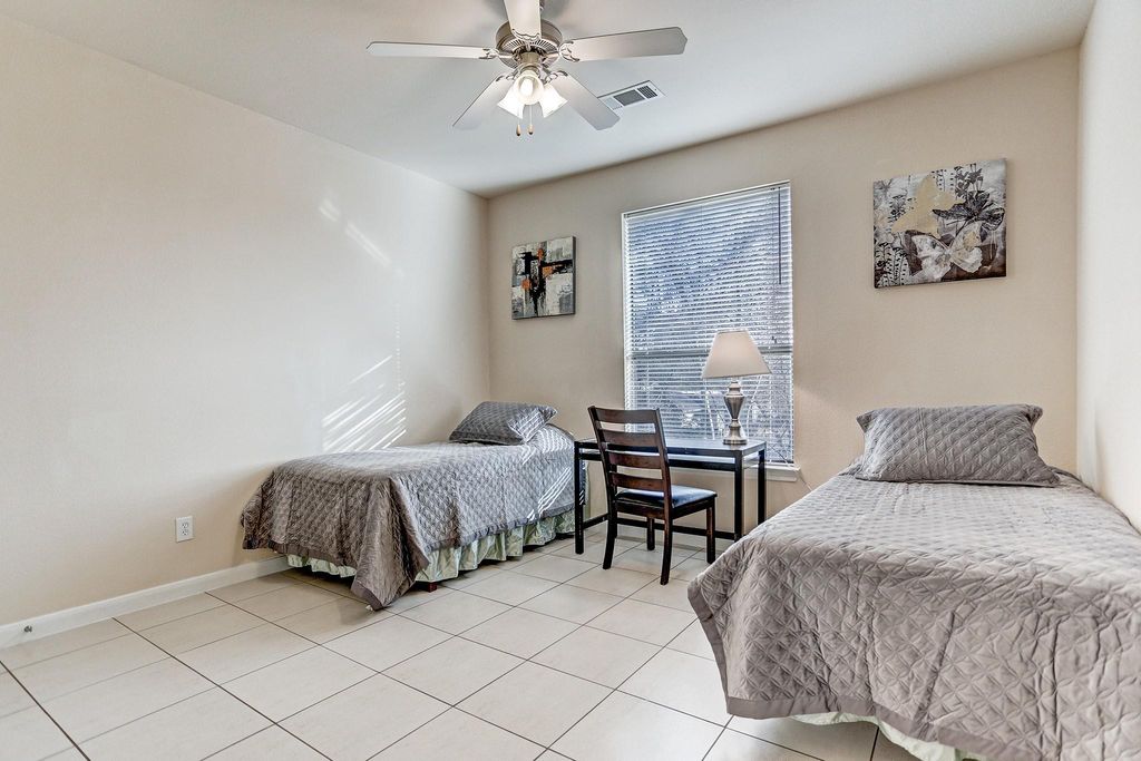 This 1400 s.f. lovely condo is located in a gated 7/24 coded entrance/exit/parking lot. 2 Reserved parking. Quiet 2nd floor unit. End of Cul-D-Sac Laverne street. New paint, totally cleaned and updated. 4 ceiling fans. 13 Seer central AC unit. Double Pane windows. Spacious 4 bedrooms or 3 bedrooms plus a Home Office/Study. 2 full bath with granite bath surrounds, large master bath has Walk-In closet. Spacious living and dining area for family activities and entertaining. Kitchen has granite counter tops with LOTS cabinets. Bring your washer and dryer. Laundry room is in the unit. All tile floor. Crown molding 9' ceiling. backing to no neighbors. Open privacy view in kitchen and bedrooms. New blinds. Personal entry way. Your dream home! Responsible on site maintenance and management.