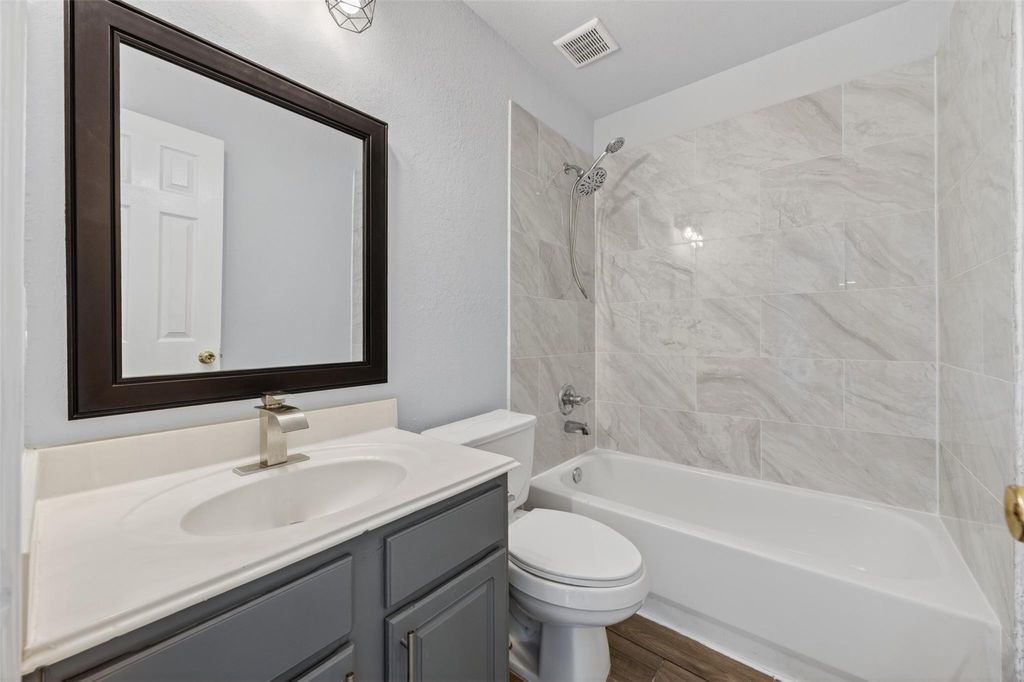 Wow, beautiful 2-story home located in the desirable Blue Creek, featuring 5 bedrms, 3 full bathrms with a low tax rate, low HOA! This spacious home offers a versatile layout with 1 bedroom and 1 full bath on the first floor, perfect for guests or multi-generational living. As you enter, you're greeted by a large formal dining and living room, ideal for entertaining. The spacious family room flows seamlessly into the breakfast area and kitchen, creating an open-concept layout perfect for everyday living. The kitchen is well-appointed with new quartz countertops, new sink, new dishwasher, new disposal, and plenty of cabinet space. Upstairs features a huge game room along with 4 additional bedrooms, including the primary suite, which offers generous space, a walk-in closet, and a spa-like bath with separate tub and shower. Fresh interior paint, and updated bathroom tile wall. Close Beltway 8, Hwy 249, IAH Airport, and nearby shopping and supermarkets. Schedule your showing today! Video.