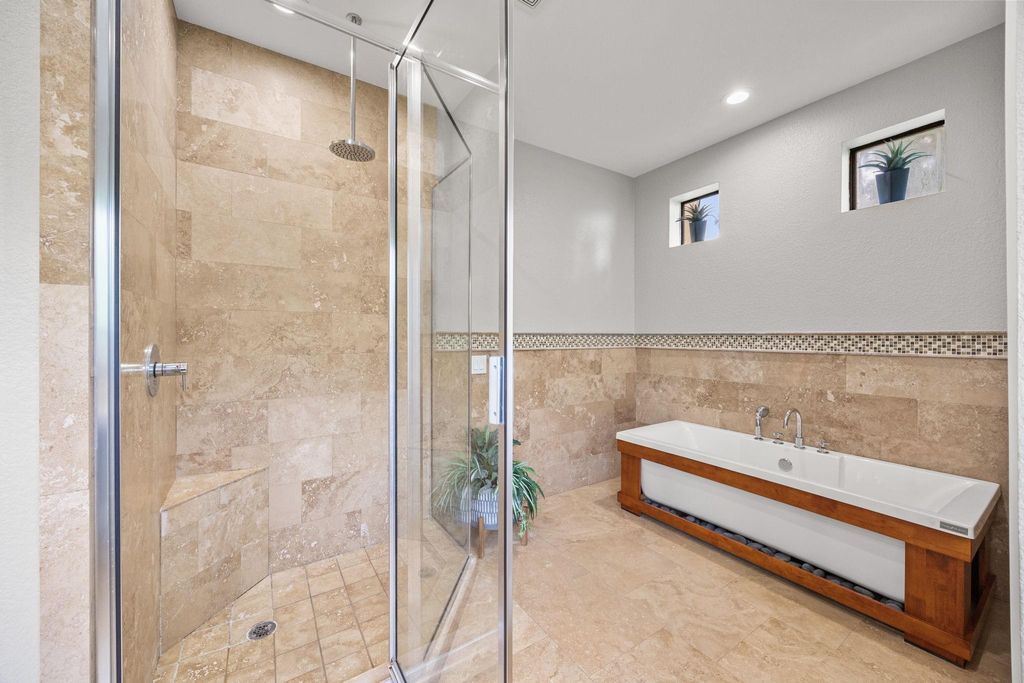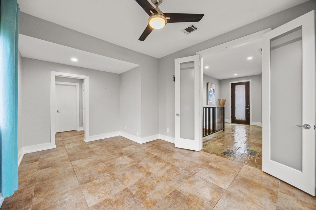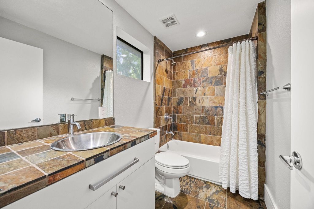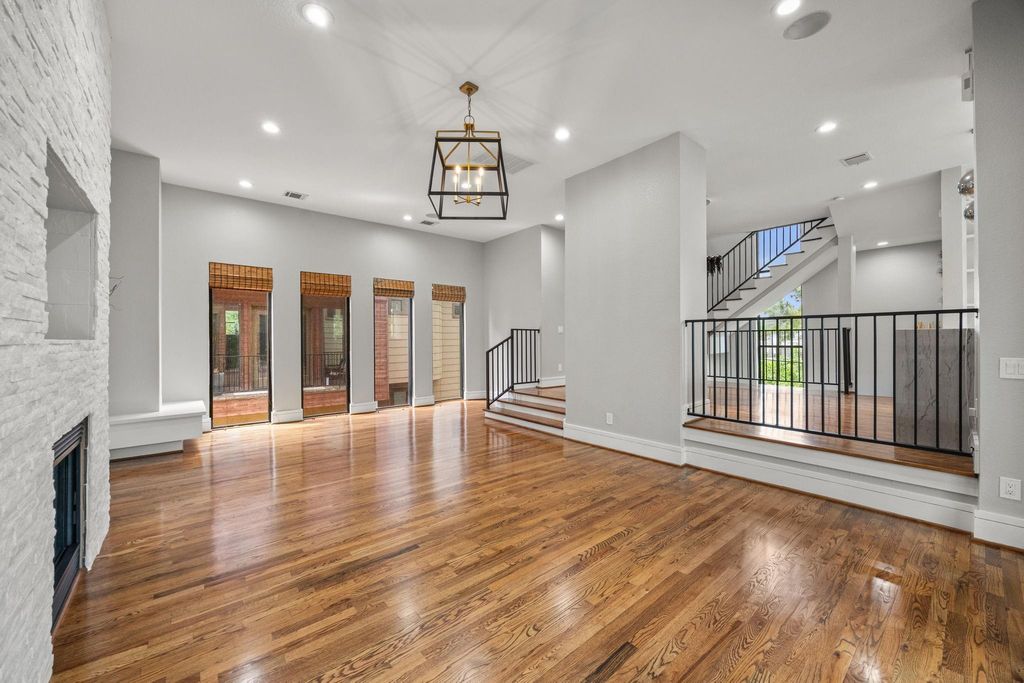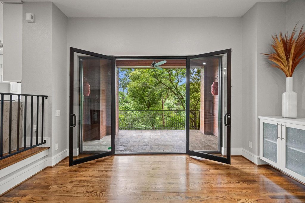 Tucked away among lush, mature trees and backing to a tranquil creek, this stunning three-story residence offers the rare feeling of a private luxury retreat in the heart of the highly sought-after Heights. Step inside to a light-filled, open-concept design where expansive windows and multiple balconies invite the outdoors in. Rich hardwood floors, a striking quartzite fireplace, and refined designer finishes create a warm yet sophisticated ambiance throughout. The gourmet kitchen is both functional and beautiful, featuring high-end stainless-steel appliances, sleek contemporary cabinetry, and elegant quartzite countertops. The primary suite is a true sanctuary, complete with a private balcony, a custom wood slatted accent wall designed for both style and sound absorption, and a spa-inspired ensuite bath. A thoughtfully designed walk-in closet with built-in shoe shelving and drawers adds to the suite's elevated appeal. Once you see it, NOTHING else compares. Welcome Home!
