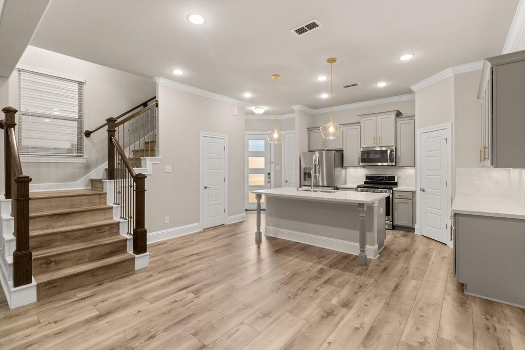 Nestled in the charming gated community of Shepherd Oaks, this beautiful home offers you a blend of comfort, style, and convenience in the heart of Garden Oaks. Step into the first floor where an open kitchen awaits, complete with a spacious island, quartz countertops, marble backsplash, and stainless steel appliances. The kitchen flows seamlessly into a bright living room with soaring ceilings, abundant natural light, and a private, low-maintenance outdoor space ideal for entertaining. Upstairs, the luxurious primary suite boasts dual vanities, soaking tub, walk-in shower, two oversized closets, and a private balcony. The second floor also offers a versatile loft space, perfect for a home office or playroom, along with a conveniently located laundry room. On the third level, you'll find two generously sized bedrooms and a guest bath. Perfectly situated in a quiet, friendly community just minutes from I-610, I-290, and Houston's premier dining, cafes, and shops! Truly a must see!