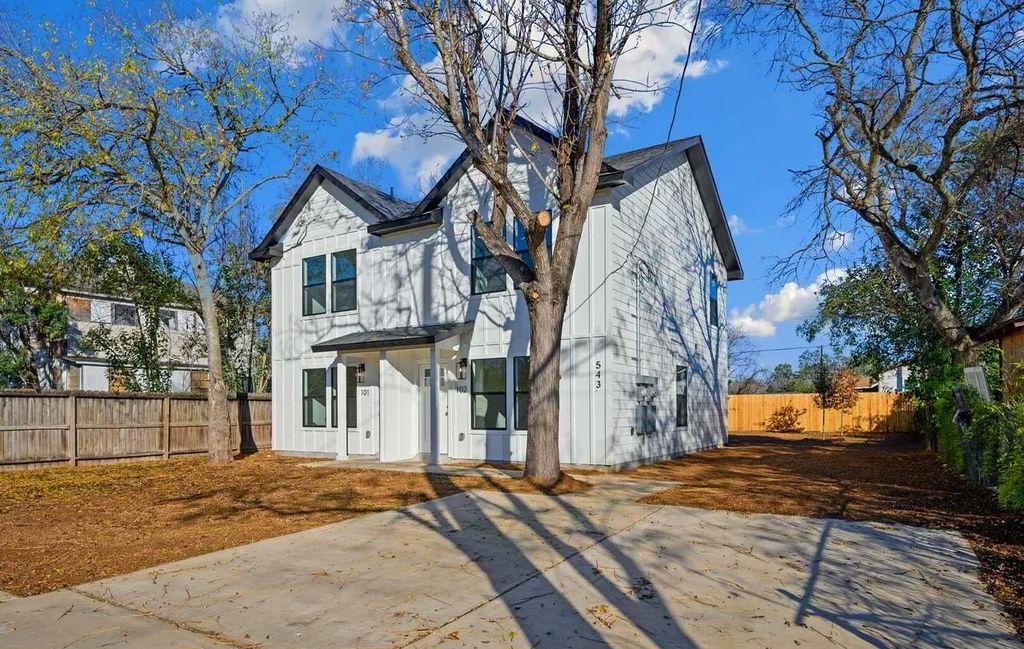 Recently renovated two-bedroom, one-and-a-half-bathroom duplex unit at 543 Delmar, Unit 102, offering 947 square feet across two stories just minutes from the San Antonio Riverwalk. The main level features an open-concept living and kitchen area with polished concrete floors, granite countertops, white shaker cabinetry, and matte black fixtures throughout. Two carpeted bedrooms upstairs each come equipped with ceiling fans and closets, served by a full bathroom finished with classic subway tile and a granite-topped vanity, with a convenient half bath on the main floor. The unit includes in-unit laundry hookups, dedicated driveway parking, and sits in a prime location with easy access to Riverwalk dining and entertainment. Available immediately at $1,500/month on a 12-month lease. Small dogs and cats welcome with a pet deposit. Water included; tenant pays electric and gas. Contact us to schedule a showing. Free 1 Month on 13 Months Lease - with Approved Credit