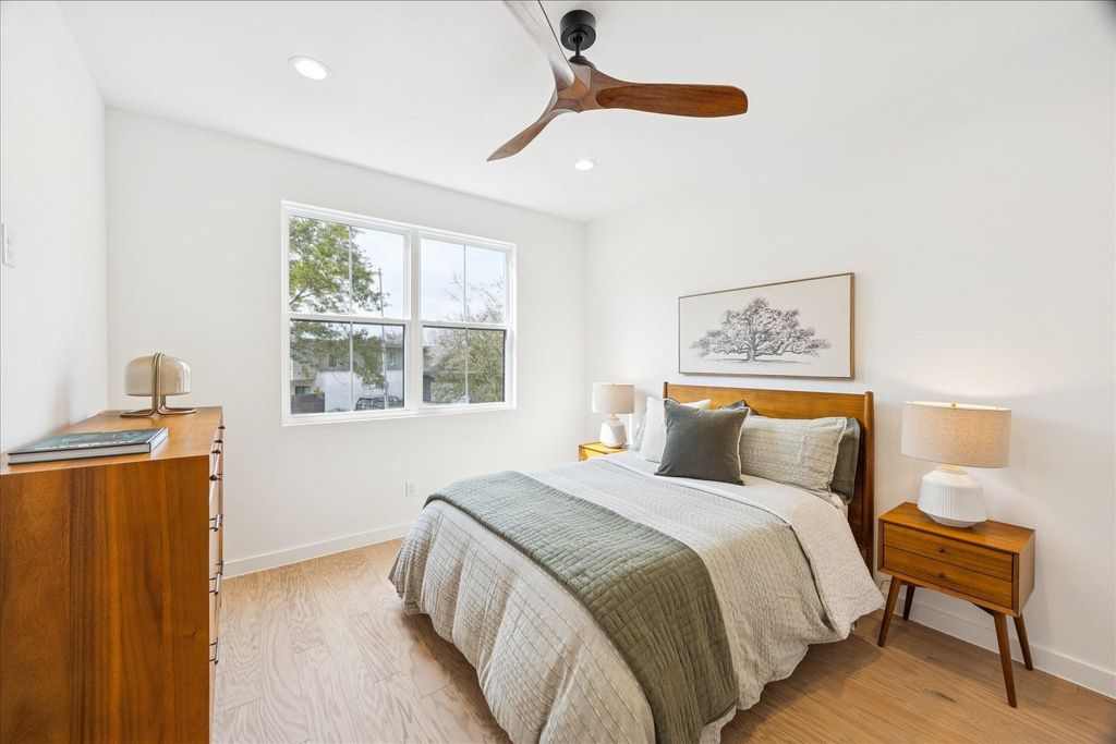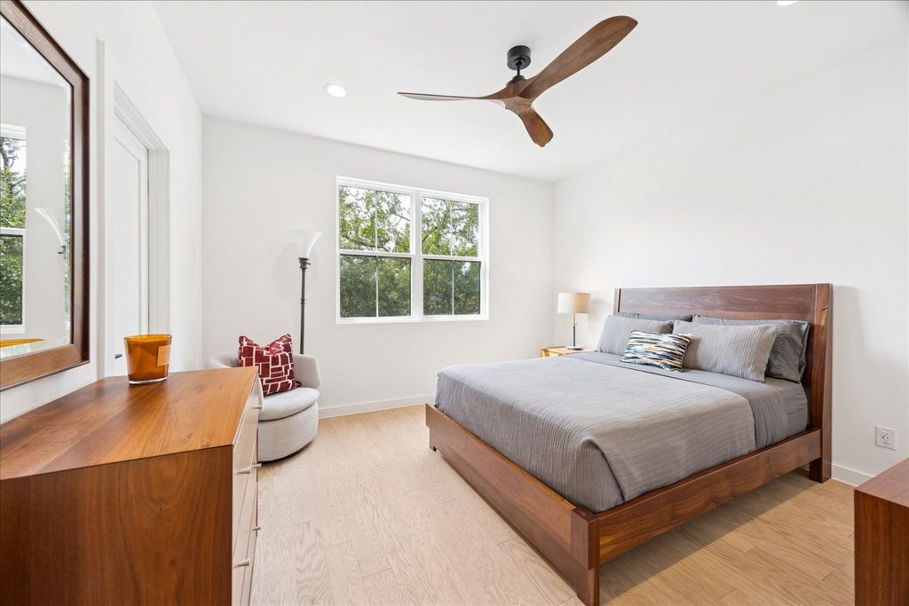 Situated in the heart of Oak Forest, this recently built home blends elegance with everyday function. High ceilings, rich wood floors, and modern finishes create a bright, open feel throughout. The first floor features a private home office, a secondary bedroom with its own full bath, and a spacious primary suite with a luxurious en-suite bath. You'll also find a utility room, formal dining area, breakfast nook, and a stylish bar"”perfect for entertaining. Upstairs offers additional bedrooms, a spacious media room, and a versatile loft that can serve as a playroom or pocket office. Step outside to a covered patio overlooking a generously sized backyard ideal for relaxing or hosting. Conveniently located within walking distance to popular restaurants, bars, and gyms, this home offers the best of Oak Forest living.