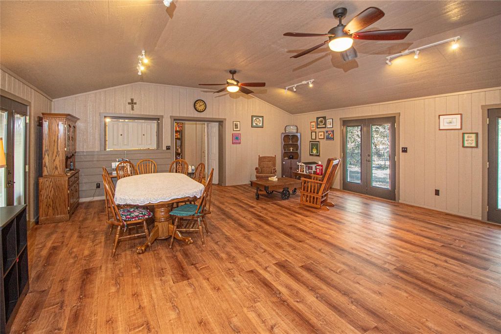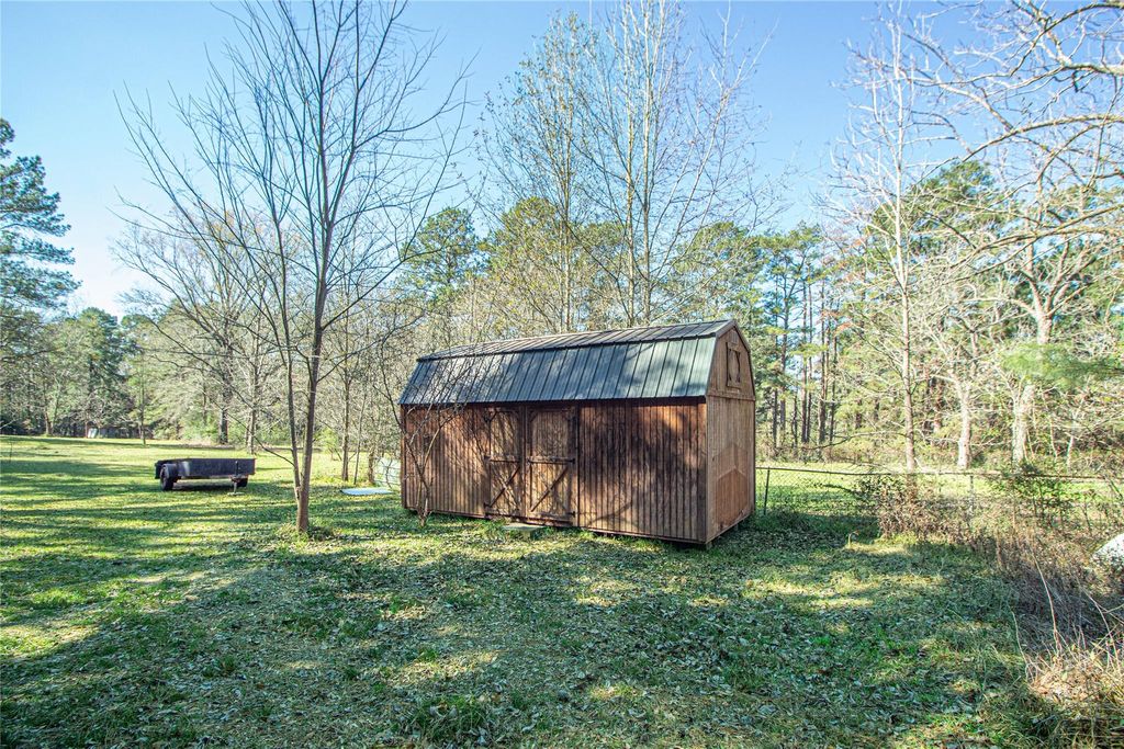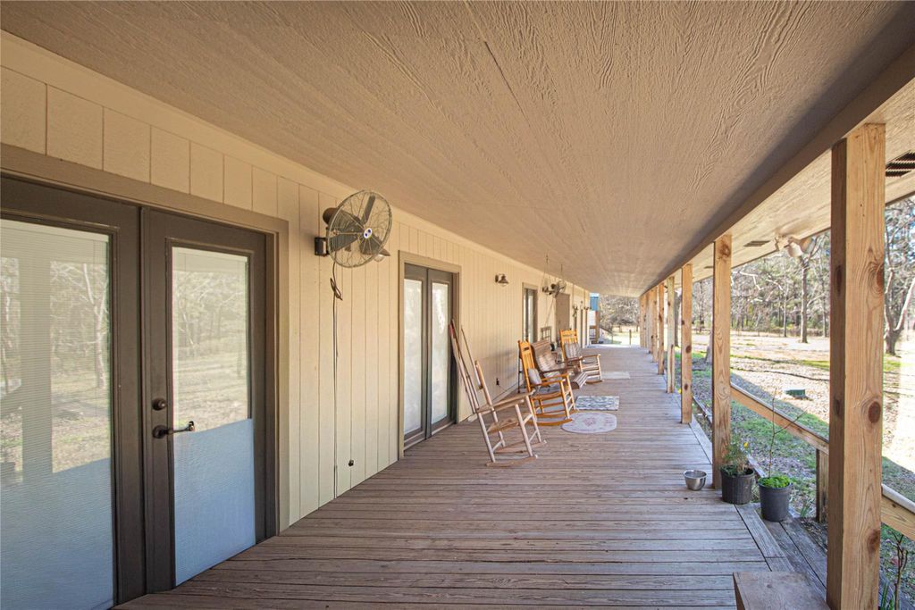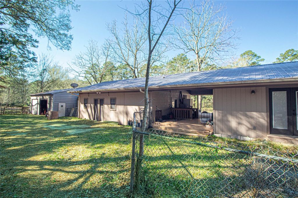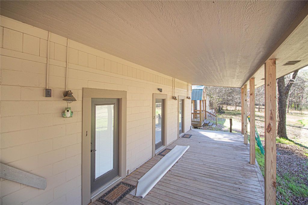 Escape to this stunning 47.75 acre retreat! The main home offers 2 bedrooms, 2 1/2 baths, and a 1200 sq ft flexible room. Step outside to find a covered breezeway and 3 attached apartments, each with its own sleeping quarters and full bathroom. Relax on the expansive covered porch overlooking nature and wildlife. Fish in your stocked spring fed pond, farm in the pastures, raise livestock, and enjoy hunting or ATV riding as well as other outdoor activities on this unrestricted land. Additional features include a detached garage, storage buildings, an equipment barn, & storm shelter. One of the outbuildings is insulated, has A/C, heat, & electricity and it is currently being used as a sewing/craft room. With over 1400 ft of highway frontage, this recreational retreat is conveniently located just 20 min to Woodville, 45 min to Livingston or Lufkin, and 90 min or less to TX-99 & IAH. Perfect for peaceful country living, farming, fishing, or hunting. Unique opportunity!