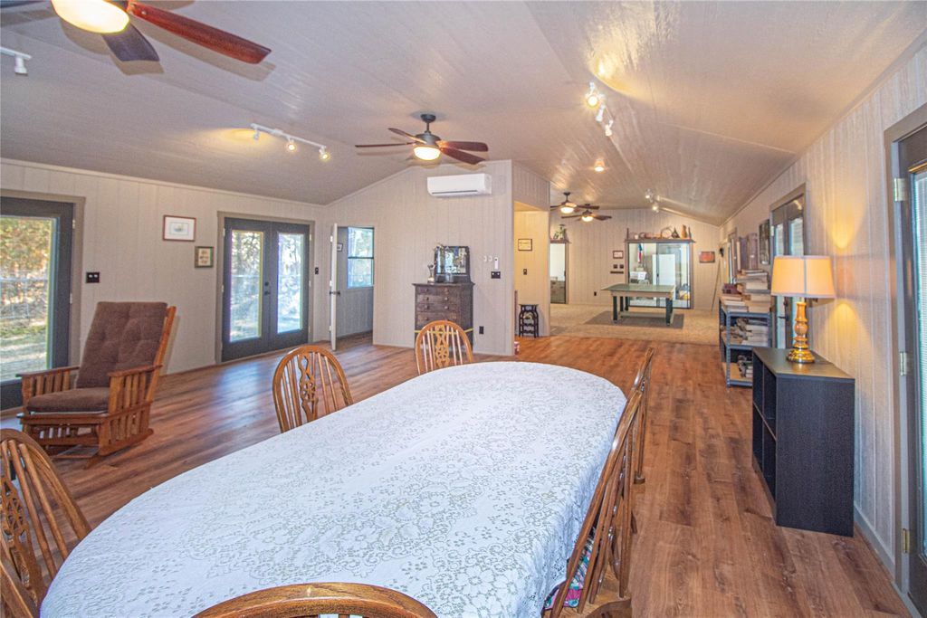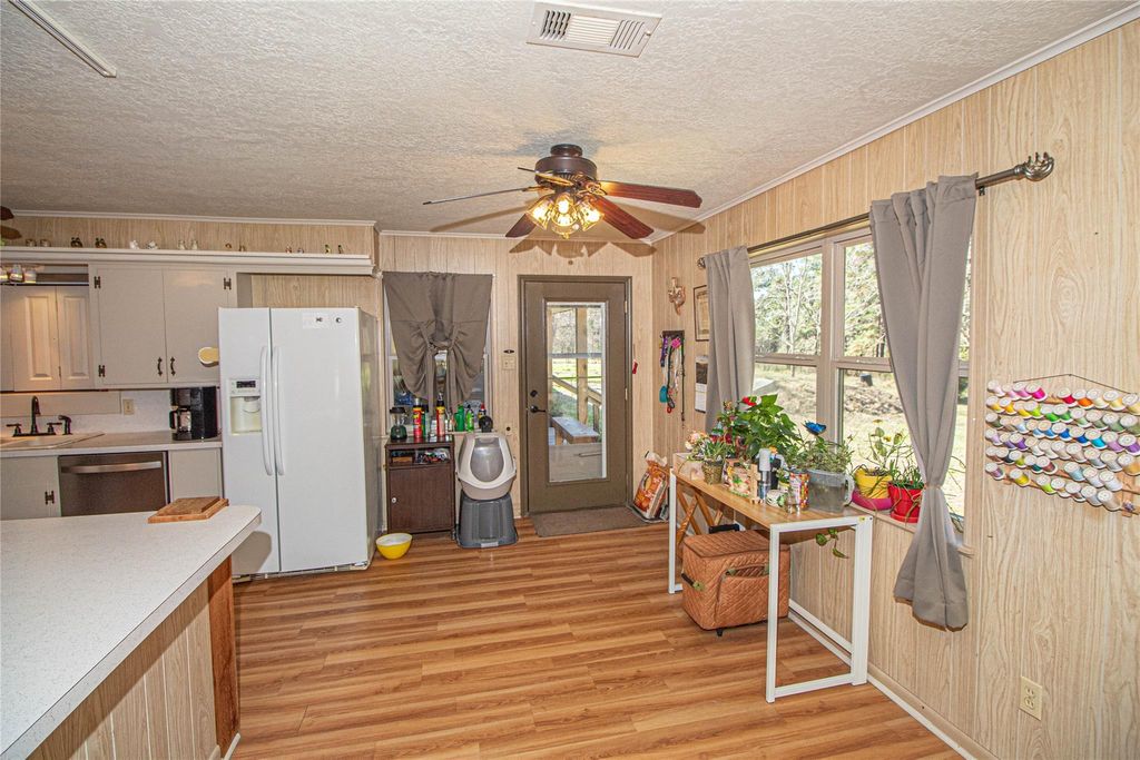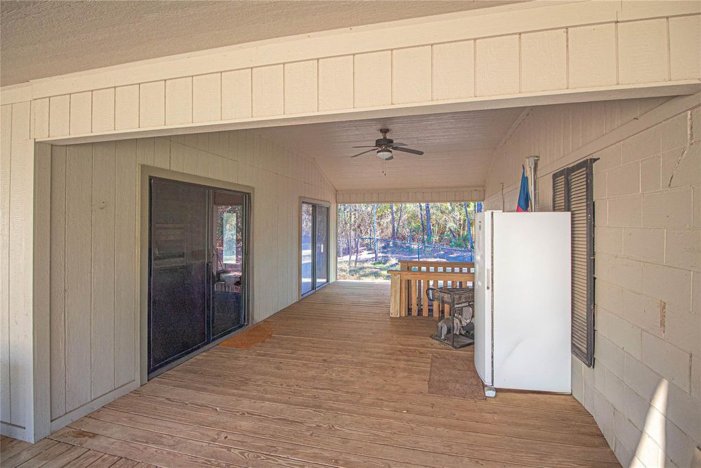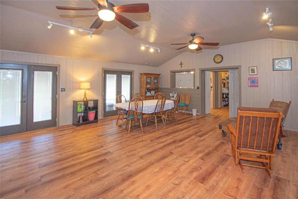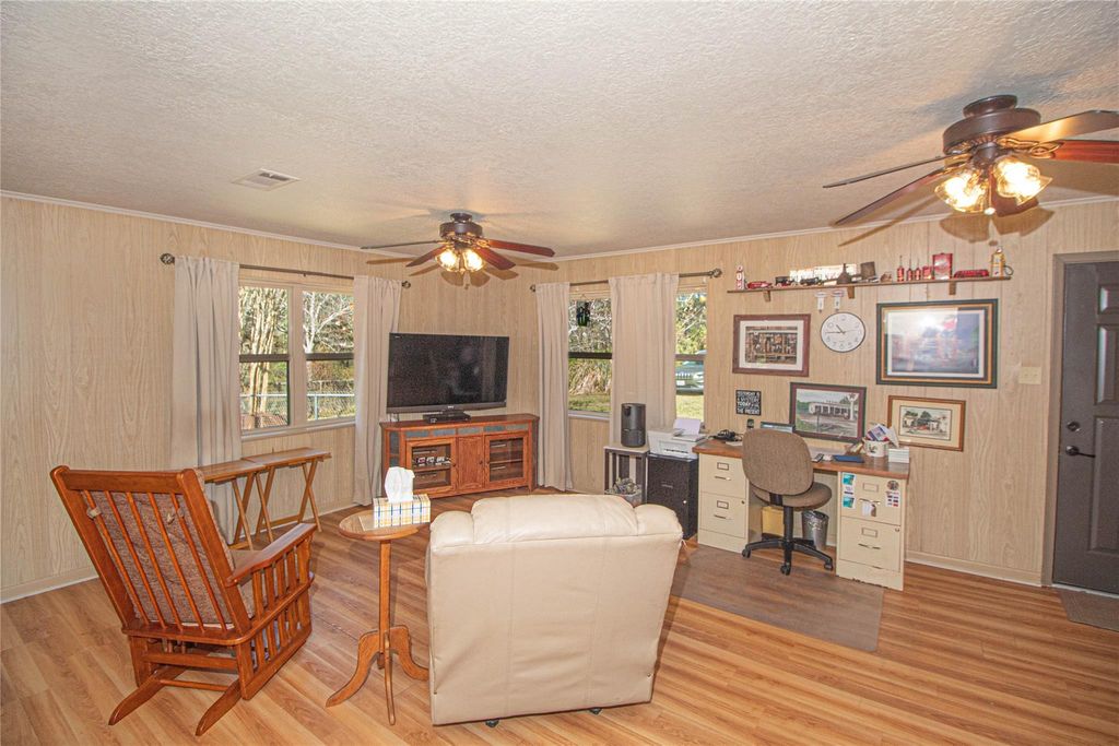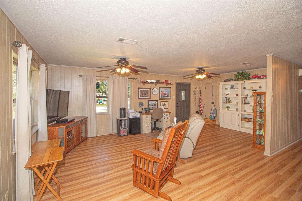 Escape to this stunning 47.75 acre retreat! The main home offers 2 bedrooms, 2 1/2 baths, and a 1200 sq ft flexible room. Step outside to find a covered breezeway and 3 attached apartments, each with its own sleeping quarters and full bathroom. Relax on the expansive covered porch overlooking nature and wildlife. Fish in your stocked spring fed pond, farm in the pastures, raise livestock, and enjoy hunting or ATV riding as well as other outdoor activities on this unrestricted land. Additional features include a detached garage, storage buildings, an equipment barn, & storm shelter. One of the outbuildings is insulated, has A/C, heat, & electricity and it is currently being used as a sewing/craft room. With over 1400 ft of highway frontage, this recreational retreat is conveniently located just 20 min to Woodville, 45 min to Livingston or Lufkin, and 90 min or less to TX-99 & IAH. Perfect for peaceful country living, farming, fishing, or hunting. Unique opportunity!