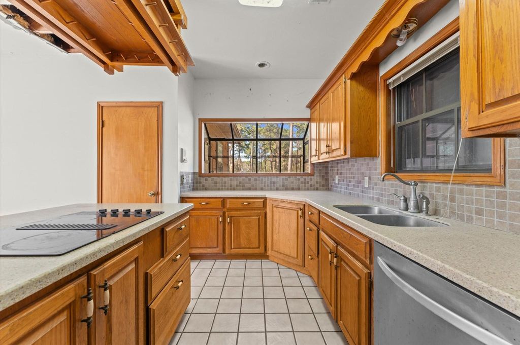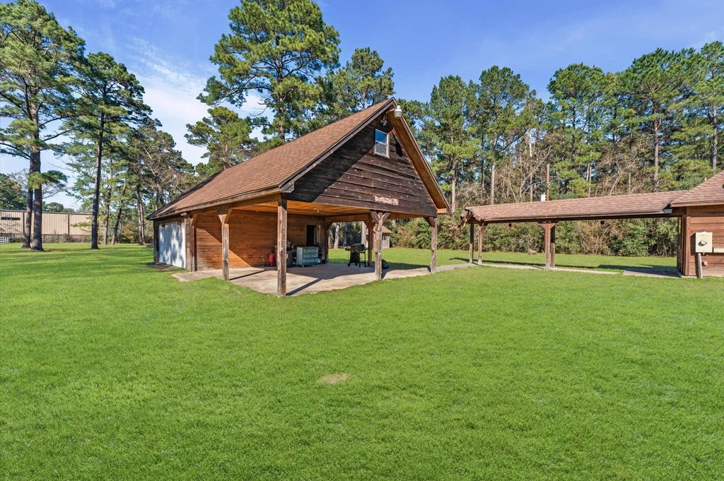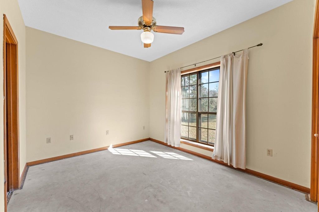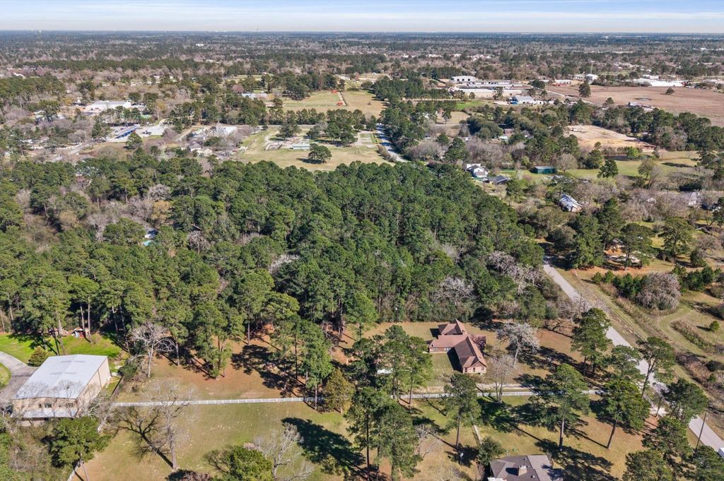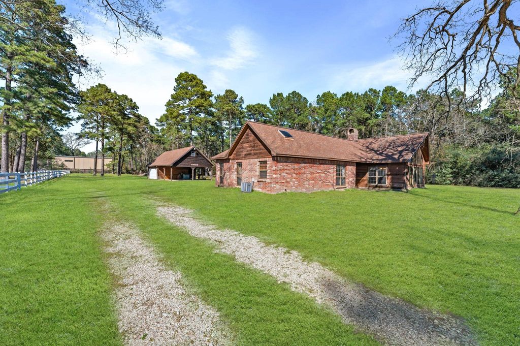 Spacious home on 2 unrestricted acres with no neighbors on the left and an open pasture across the street, offering privacy just a short drive to Hwy 249. Features 5 bedrooms, an optional flex space ideal for a nursery, study, or office. The living room offers soaring ceilings, wood beams, and large windows that fill the space with natural light, anchored by a brick fireplace. The kitchen includes a large island with a cooktop, abundant cabinetry, a spacious pantry, and a window shelf perfect for plants or herbs. Built-ins and multiple closets provide excellent storage throughout. The primary suite features 3 closets, a large ensuite bath, and a skylight. Two secondary bedrooms share a Jack-and-Jill bath with private vanities and lavatories. An additional full bath is located nearby. An unfinished 484 sq ft space above the garage offers endless potential. The home needs some TLC, but is easily livable, presenting a great opportunity to update at your own pace. sold as is