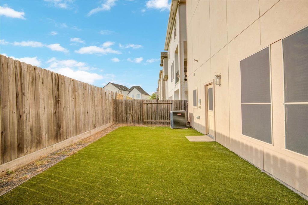 Step into this stunning 3-bedroom, 3.5-bath home in the sought-after gated community of Cambridge Heights. Thoughtfully designed, this residence blends modern luxury with everyday convenience. One bedroom with ensuite on the first floor is perfect for guests or multigenerational living. The interior showcases a soft, neutral palette and a bright open-concept layout. Expansive living and dining areas are ideal for entertaining, framed by large windows that flood the home with natural light. The gourmet kitchen impresses with upgraded appliances, abundant cabinetry, and generous counter space. Each bedroom is spacious with private en-suite baths for comfort and privacy. A stylish guest half-bath completes the layout. Enjoy a backyard with artificial turf for a lush, low-maintenance lawn year-round. Minutes from Texas Medical Center, Metrorail, and major freeways for easy Houston access. Refrigerator, washer, dryer included.