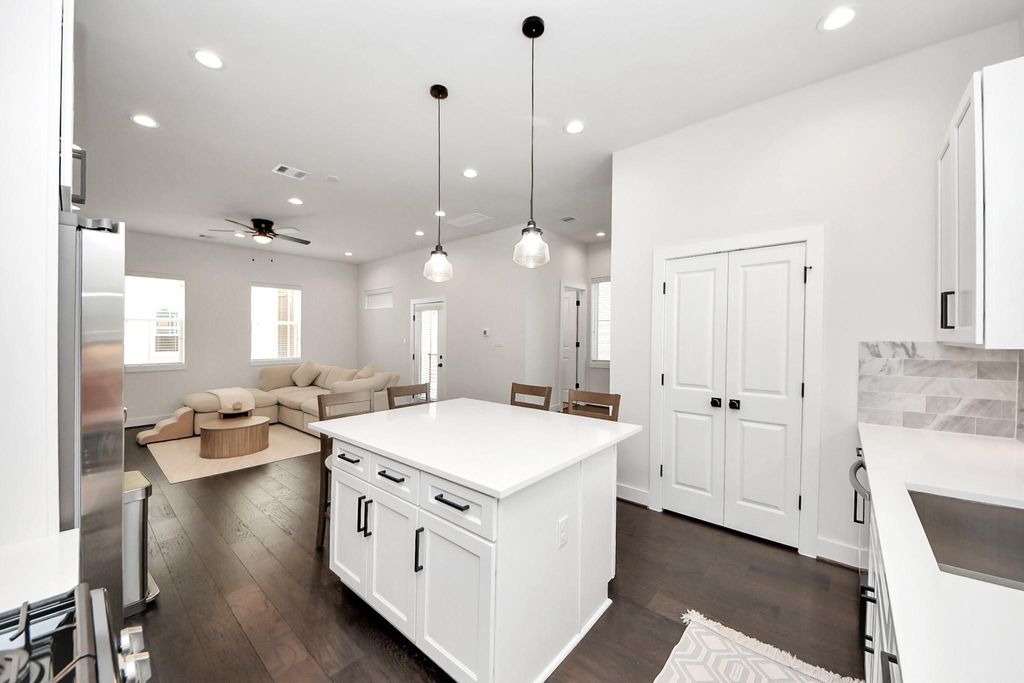 Better than New! A beautifully designed 3-bedroom, 3.5-bathroom modern home in the gated community! This home offers an open-concept layout with contemporary elegance. The gourmet kitchen features stainless steel appliances, custom cabinetry, a stylish center island, and a breakfast nook, ideal for entertaining, complemented by a convenient half-bathroom. The primary suite is a serene escape with a luxurious en-suite bathroom, including a freestanding tub, dual sinks, shower, and spacious walk-in closet"”all carpet-free. Two additional bedrooms, each with private bathrooms! Enjoy a private balcony, backyard retreat, and secure community living. Just 15 minutes from Downtown Houston, with easy access to I-610, this home is steps from Garden Oaks /Oak Forest. MOVE IN READY! whole house beautiful modern Furniture are available for purchase! still has builder warranty! INCLUDING SMART FRIDGE, Washer and dryer! $3000/month if you want to rent including furniture.