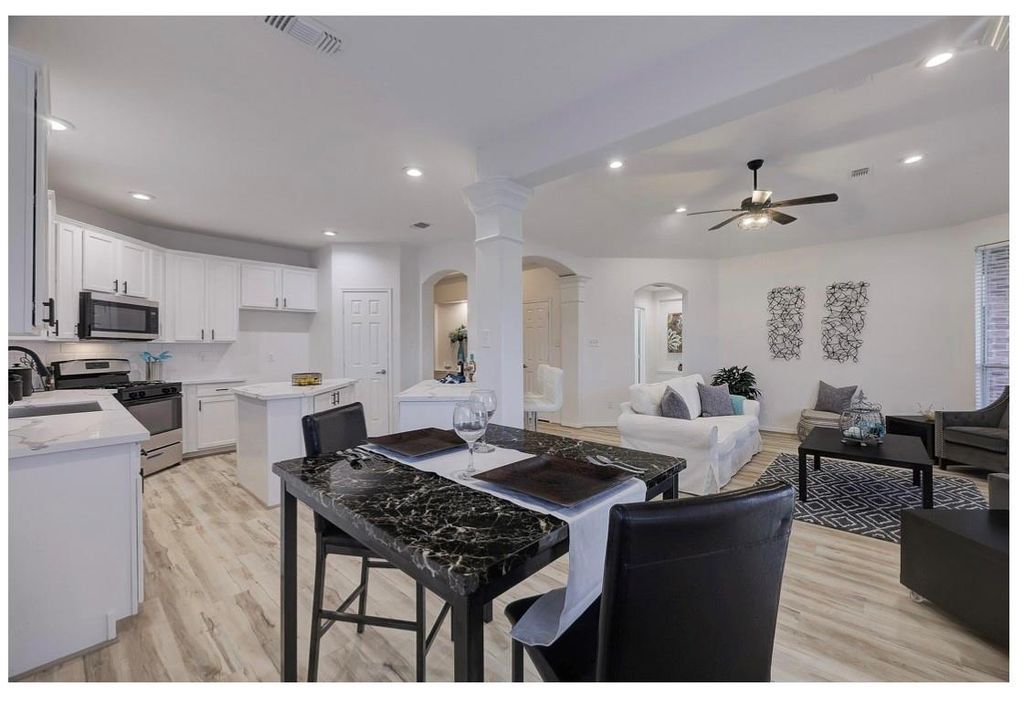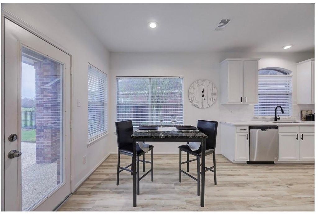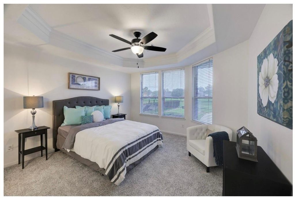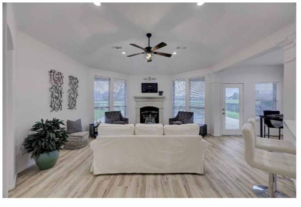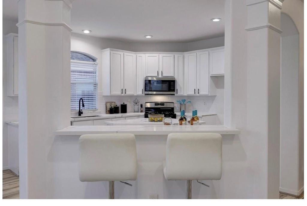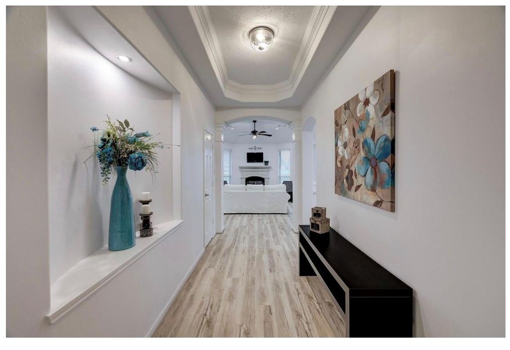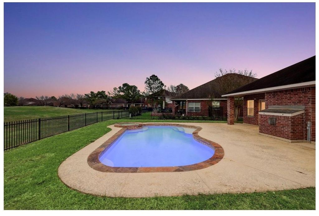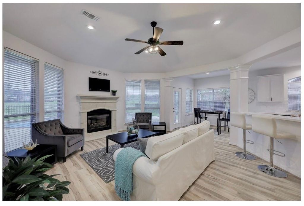 Located on the golf course in a gated, master-planned community, this elegant one-story home is zoned to fantastic Cy-Fair ISD and packed with updates! Enjoy a sparkling pool with color-changing LED lights, perfect for hot Texas days. Inside, find high ceilings, a bright open layout, quartz countertops in kitchen and baths, and stainless steel appliances. The kitchen opens to the family room with a fireplace and features a large island (no cooktop). Updates in the last 2 years include refrigerator, dishwasher, washer, and dryer. The luxurious primary suite features a designer walk-in shower with frameless glass and a massive closet. Additional highlights include a beautiful entry and striking wall niches. Roof and AC only 5 years old. Stone Gate offers a splash pad, rec center, clubhouse, tennis courts, basketball pavilion, and sand volleyball. Washer, dryer, and refrigerator included!