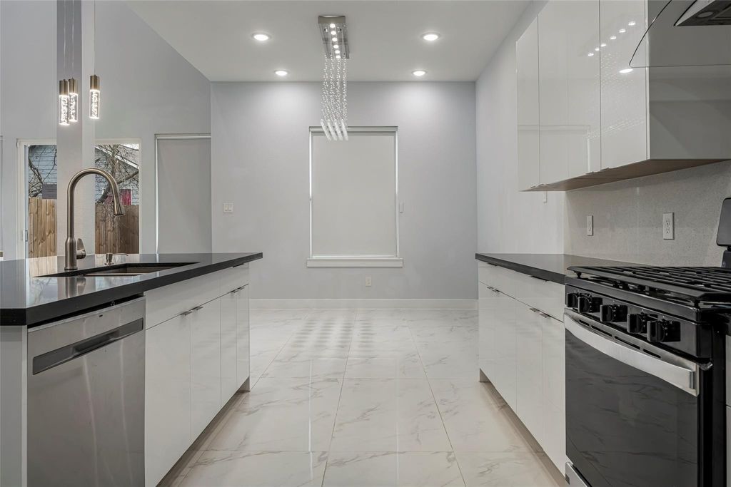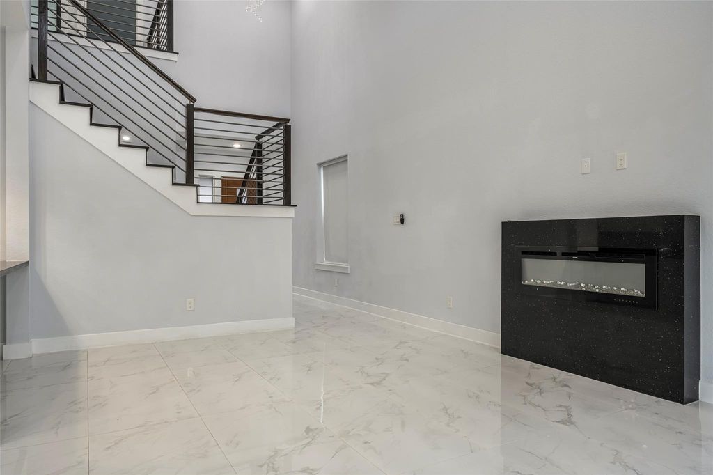 Modern build in Rosslyn Heights featuring soaring 22 ft ceilings, oversized porcelain tile, and a sleek quartz kitchen with full backsplash and gas range. Open concept layout with electric fireplace, spacious primary suite, and 2 car garage. Listing may incorporate floorplan and virtual furnishings to help visualize its potential. Property is being sold in "as-is condition", dimensions and information are approximate and buyer/representation responsibility to verify.
