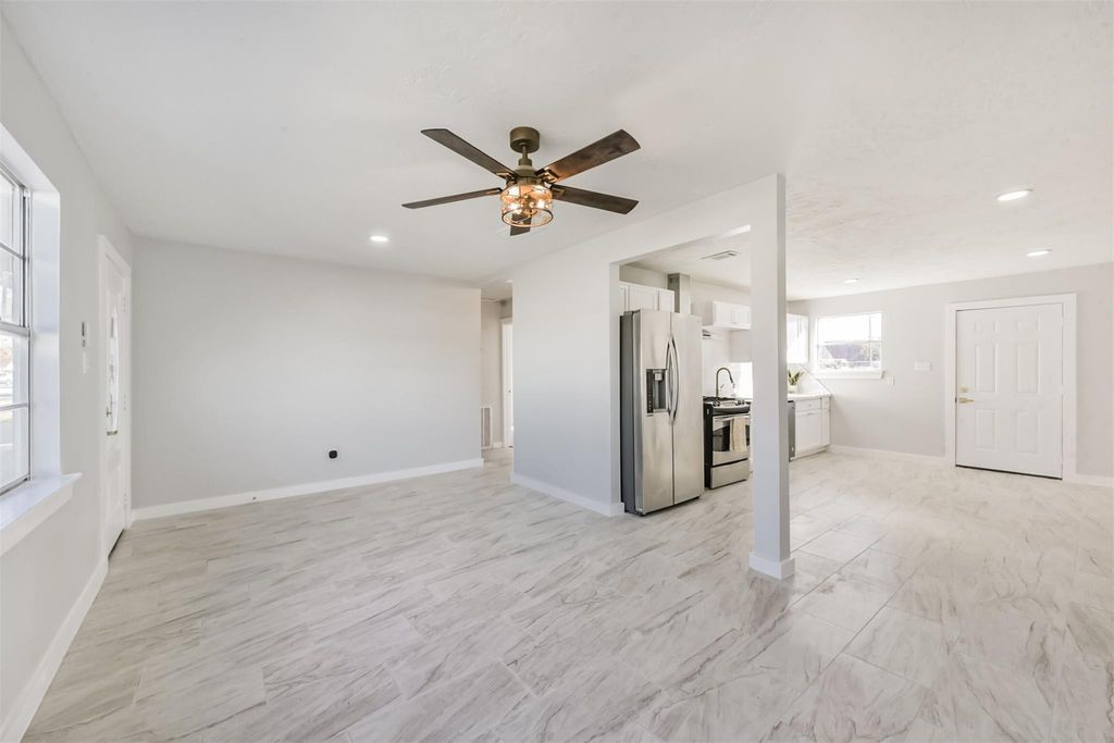 Welcome to 3305 Stallings Drive"”completely remodeled and move-in ready in Northwest Houston! This 3-bedroom, 1-bath home offers 1,144 sq ft of thoughtfully updated living space, featuring very large bedrooms, fresh paint, new carpet, and new tile in the living room, kitchen, and bath. The kitchen has been fully refreshed with new cabinets, new countertops, a stylish backsplash, a new disposal, and a new refrigerator water valve. Behind the scenes, all under-sink faucets, P-traps, shower mixing valves, GFCIs, receptacles, water lines, and the toilet are new. Recessed lighting and ceiling fans include a convenient night-light mode. Outside, enjoy room to park a trailer, boat, or RV. The backyard offers complete privacy"”there are no backyard neighbors, and the property line extends well beyond the fence to the rear of the lot. Thoughtful updates inside and out make this home truly move-in ready.