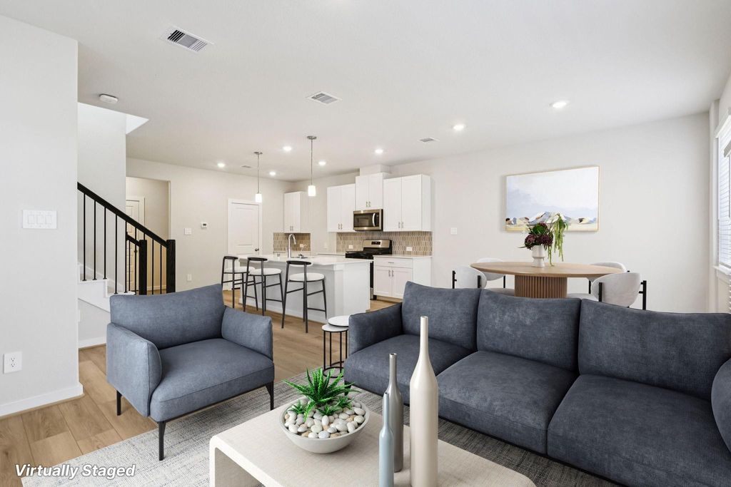 Brand new, energy-efficient home available by Apr 2026! An open concept allows you to prepare dinner at the Harlow's kitchen island without missing conversation in the great room.White cabinets with white quartz countertops and grey mosiac backsplash, grey tone EVP flooring and multi-tone carpet. This master-planned community is a rare find in Spring Branch. The Townhome Series features a simple buying process with clear pricing and no surprises. With ready move-in homes made up of five two-story floorplans ranging from 1,495 - 2,052 sq. ft., you're sure to find something you'll love. Each of our homes is built with innovative, energy-efficient features designed to help you enjoy more savings, better health, real comfort and peace of mind.