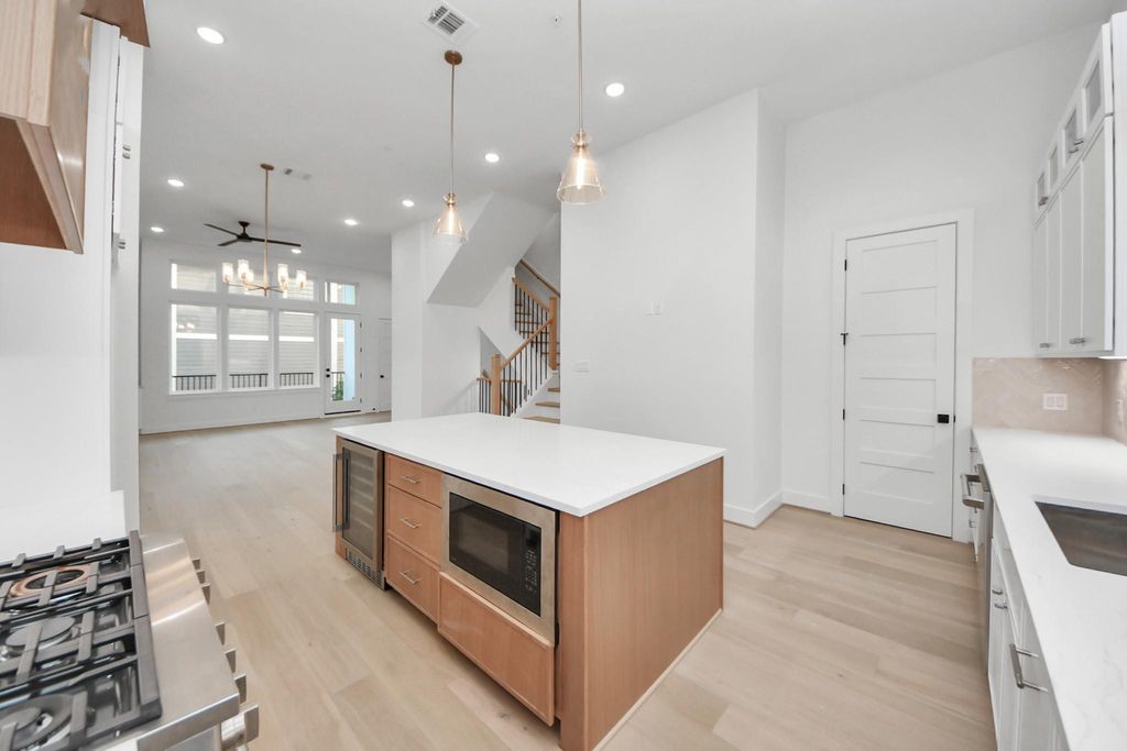Gorgeous new construction in the heart of Houston's Museum District. Walking distance to the Museums, Medical Center, Rice University, Rice Village, Mid Town, Downtown and much more. These new homes feature an amazing view of the downtown skyline from the huge 4th floor terrace that opens up from the game room. Great layout with a formal entry and one bedroom on the 1st floor, all living/kitchen/dinning and balcony on the 2nd, primary and secondary bedrooms on the 3rd, and gameroom/entertainment area on the 4th. The 4th floor gameroom has a full bath and can be used as a 4th bedroom. White oak hardwood floors. Gorgeous kitchen with tons of cabinet storage and high end chef grade appliances. Great size primary bedroom with beautiful primary bath. Huge storage area in the mechanical room. Please note all pictures are from 4819 C which is the model home, interior finishes may vary.
