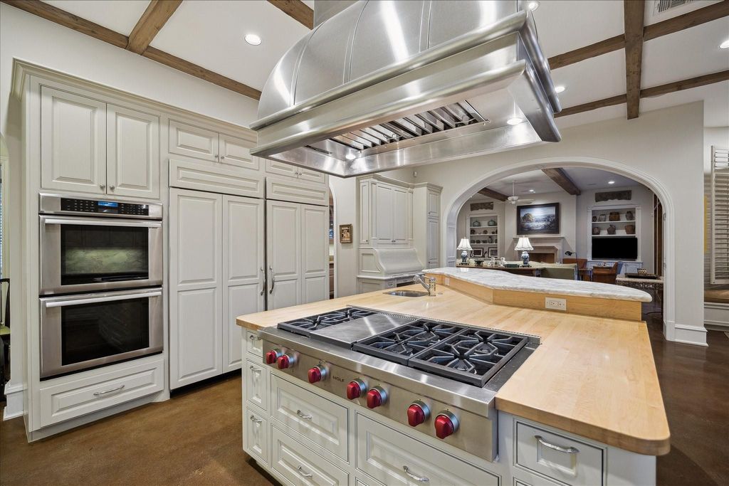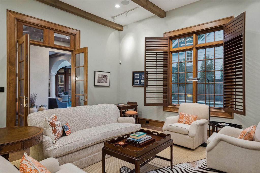 Elegant Morris-Hullinger design-build showcasing timeless architecture and exceptional craftsmanship. Light-filled interiors highlight crown molding, wood beams, custom ironwork, mahogany built-ins, and multiple fireplaces. The first floor offers formal dining, a butler's pantry, an island kitchen with breakfast area, an expansive family room, and a richly appointed private library. Ascend to the second floor to discover a spacious primary suite, three guest bedrooms with ensuite baths, a study area, and a utility room. The third floor provides a versatile bonus space ideal for a guest bedroom or fitness studio with an ensuite bath. Outdoors, enjoy a beautifully landscaped setting with a pool, covered patio, and summer kitchen, along with a detached card/game room, two-car garage with a sixth bedroom/quarters above. This exceptional home blends thoughtful design with modern amenities. Urban location in sought after 3100 block of Locke Lane, close to all the best shopping & restaurants.