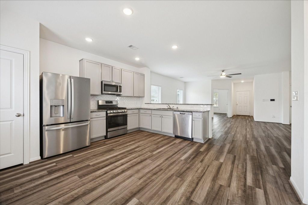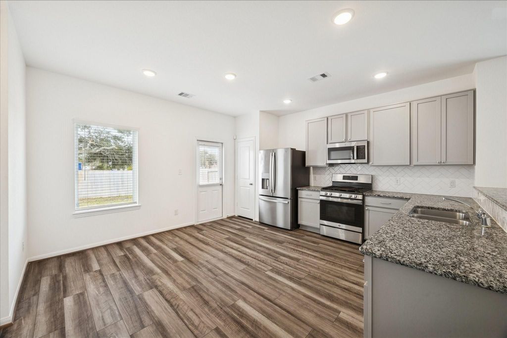 STOP THE CAR! Discover an affordable 2021-built 3-bedroom home with an additional flex room"”perfect for an office, playroom, study, or anything your lifestyle needs. This versatile layout offers endless opportunities to make it your own. Nestled in a quiet cul-de-sac, the home features low-maintenance living in a family-friendly neighborhood, with easy access to major freeways for a straight, convenient commute to both Houston and Galveston. This budget-friendly gem is sure to impress with sleek vinyl plank flooring throughout, granite countertops, stainless steel appliances, and thoughtfully designed modern finishes. And the best part? NO HOA! If you've been waiting on the sidelines for a truly turnkey home in a peaceful community"”at one of the few remaining affordable price points"”this is your moment. Come tour quickly"”this home is priced to sell and expected to draw high interest!