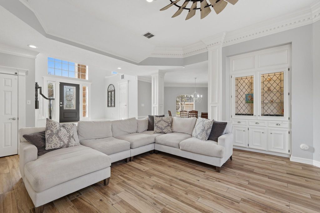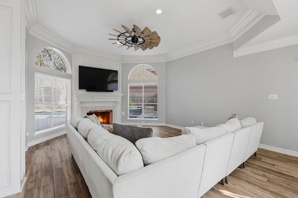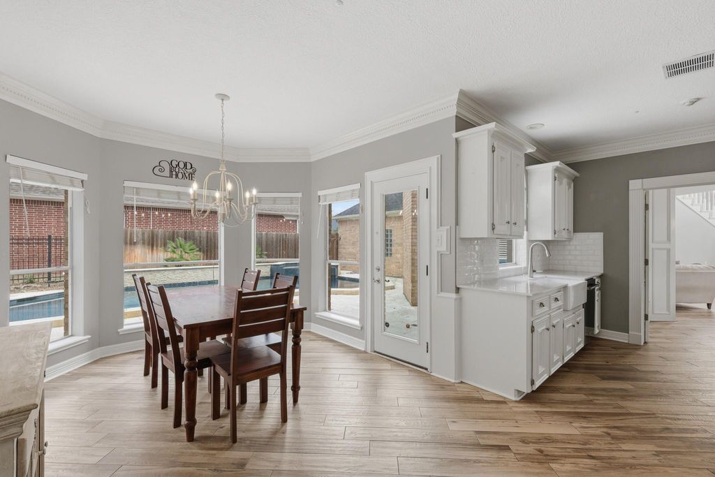 Set on a prominent corner cul-de-sac in Greatwood Shores, this stately brick home makes an impression from the start with its circular drive and oversized three-car garage. Inside, bright, light-filled interiors showcase expansive windows, detailed moldings, and new flooring surrounding a sunken family room anchored by a gas-log fireplace. Designed with flexibility in mind, the layout offers formal dining, a private study or playroom near the secondary bedrooms, a spacious game room, and an in-home wet bar for seamless entertaining. The remodeled kitchen features quartz countertops, double ovens, and views of the pool. The first-floor primary suite provides a private retreat with dual closets and a spacious ensuite bath. Outdoors, golf course views frame a renovated pool and spa, custom pergola with outdoor kitchen, travertine decking, fire pit, and mosquito system"”crafted for evenings that linger.