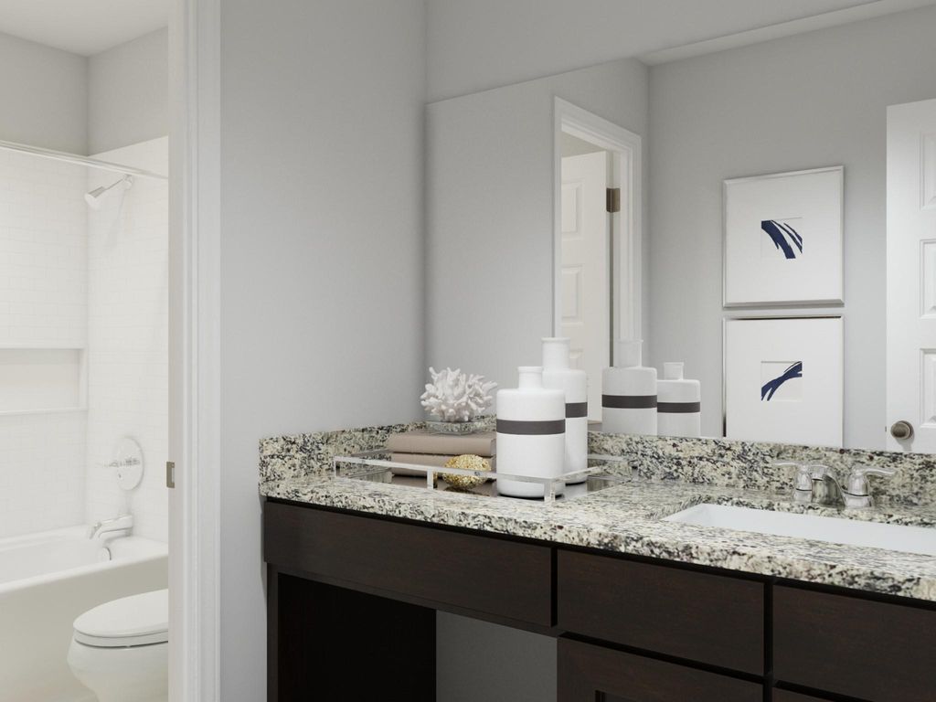 Love where you live in River's Edge in Conroe, TX! Home is zoned to the excellent Woodlands schools - Buckalew Elementary School, Mitchell Intermediate School, McCullough JH School, and Woodlands High School. Now featuring Legend's NEW Smart Home package and Signature Design Collection! The Redbud floor plan is a spacious two-story home with 5 bedrooms, 3.5 baths, game room, and 2-car garage. This home has it all, including privacy blinds and vinyl plank flooring! The gourmet kitchen is sure to please with 42" cabinets, silestone countertops, stainless-steel appliances, and a box window at the dining area! You'll love the COUNTER SPACE and a center island! Retreat to the first-floor Owner's Suite featuring a box window, double sinks with silestone countertops, a separate tub and shower, and a walk-in closet! Enjoy the great outdoors with a sprinkler system and a covered patio! Don't miss your opportunity to call River's Edge home, schedule a visit today!