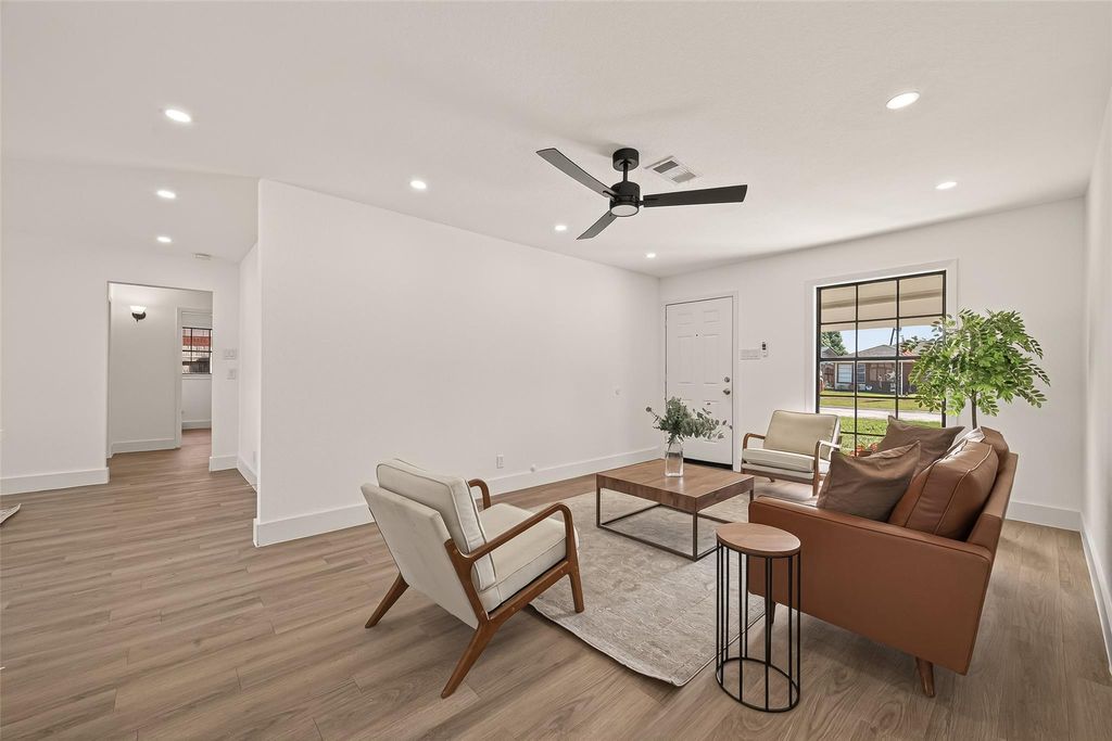 Welcome to this beautifully remodeled single-story home in Baytown, TX! This charming property features a fresh and inviting elevation complemented by a brand-new driveway and roof. Step inside to discover an open, functional layout with brand-new flooring, modern lighting, and fresh interior and exterior paint throughout. The kitchen has been completely renovated with new cabinets, countertops, and fixtures, while both bathrooms have been stylishly updated with contemporary finishes. The home also includes new plumbing and new breaker box. With no HOA, no flood history, and a low tax rate, this property combines comfort, style, and affordability"”ready for its new owner to move in and enjoy worry-free living! Buyers to independently verify information.