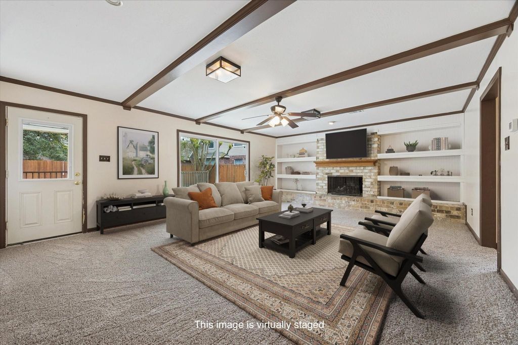 This home is located among the trees and conveniently located across the street from the park. Entry is private with a courtyard leading to the front door. Downstairs has an open floor layout. Once inside and off of the spacious entry a large family room with brick fireplace and ample built-ins draws you in. From the sun filled family room the French doors lead out to the covered patio and spacious deck and to the sparkling pool. The kitchen is bright, roomy and has adjoining breakfast area. All bedrooms are located upstairs each with very spacious closets. Garage is insulated and has ductless mini split and can be used as an extra space for game room, etc. or keep as a garage. Fresh paint and carpets completely replaced. Home is well maintained and ready for move-in. All appliances convey. All measurements should be verified.